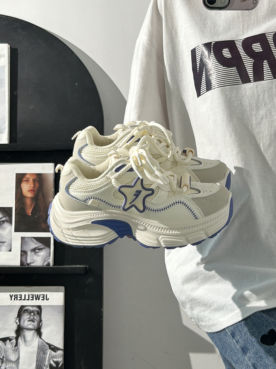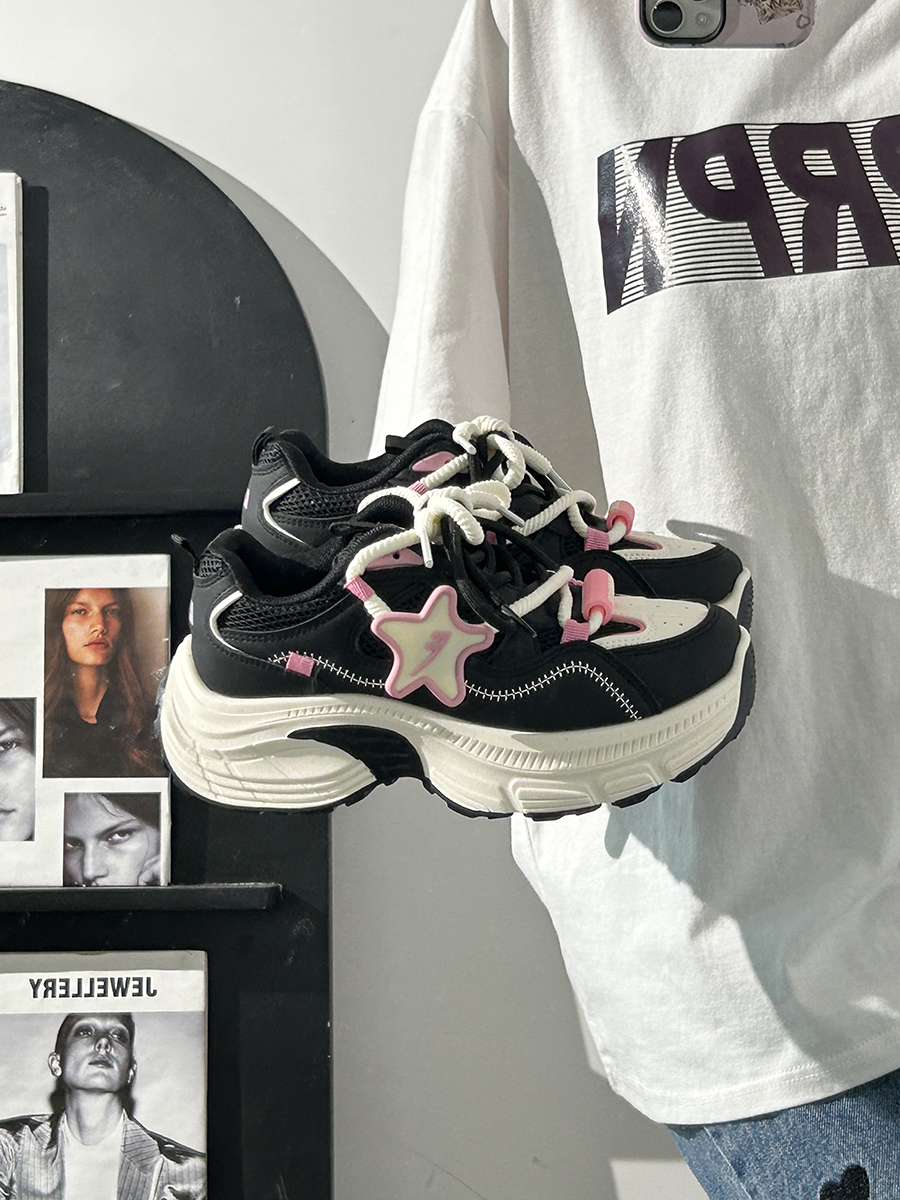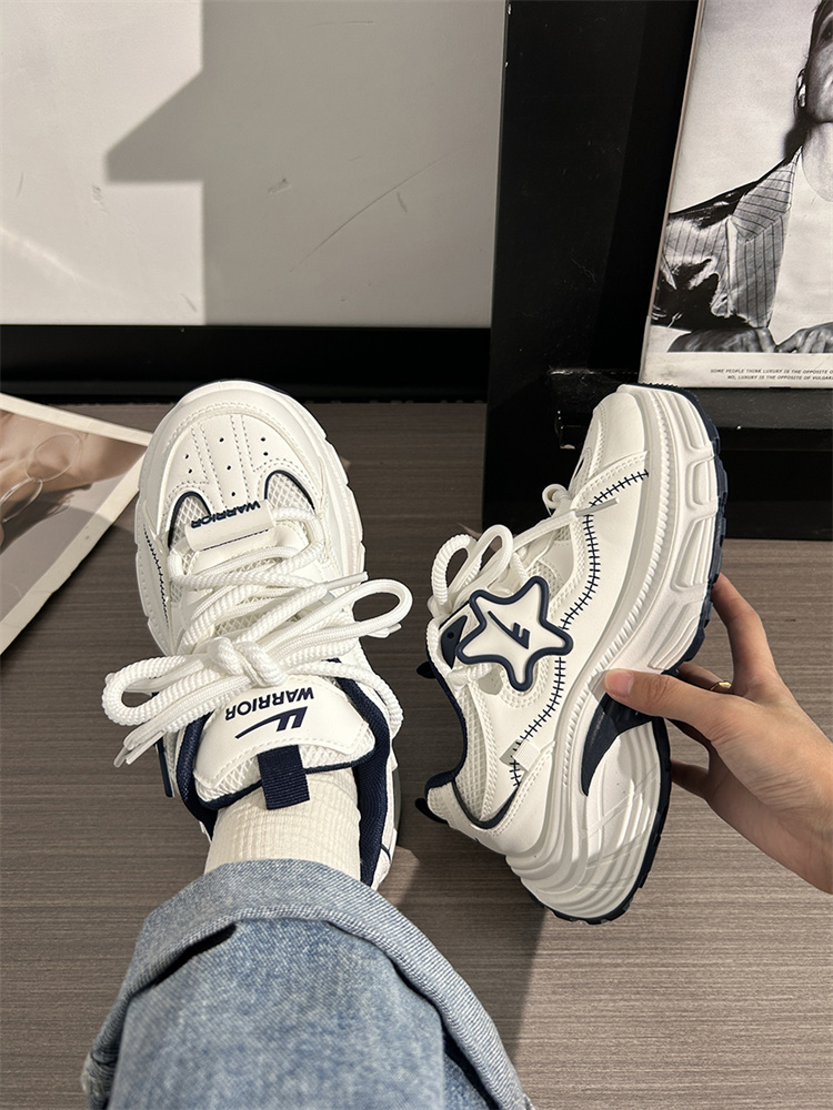 厚底的老爹鞋真的很显高,显腿细!版型非常的板正,鞋底能给到很好的支撑,日常活动运动都是可以的,不累脚,不闷脚。黑白的配色非常的经典,另外还有俩种配色可以供您选择。