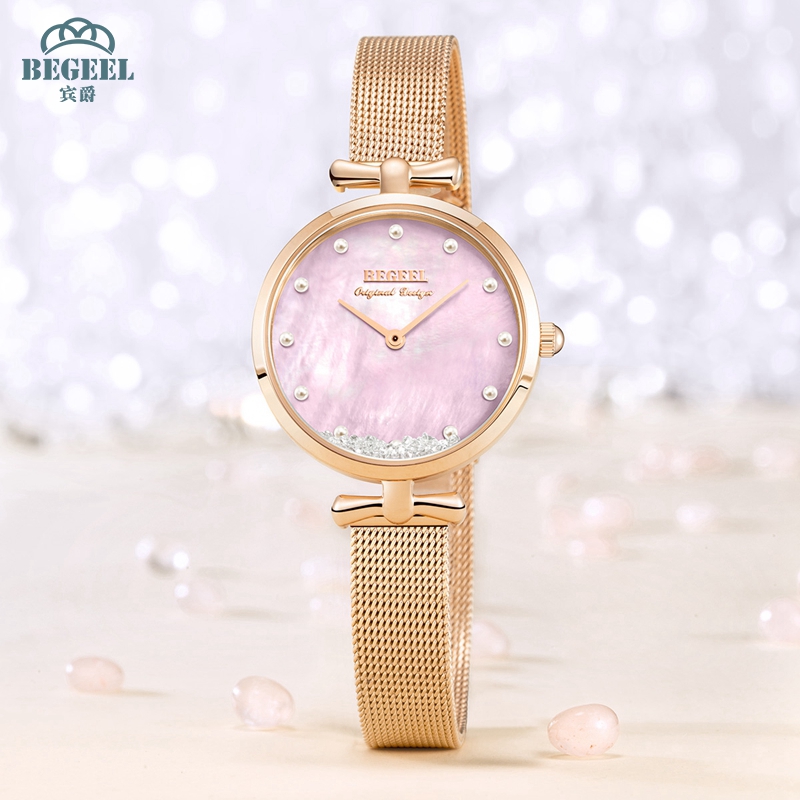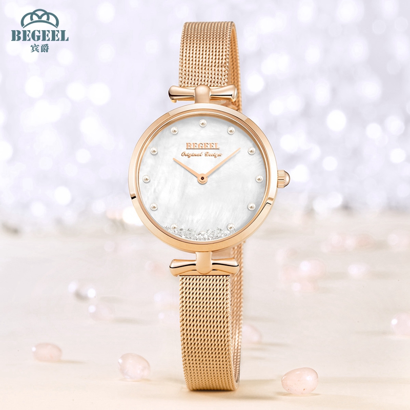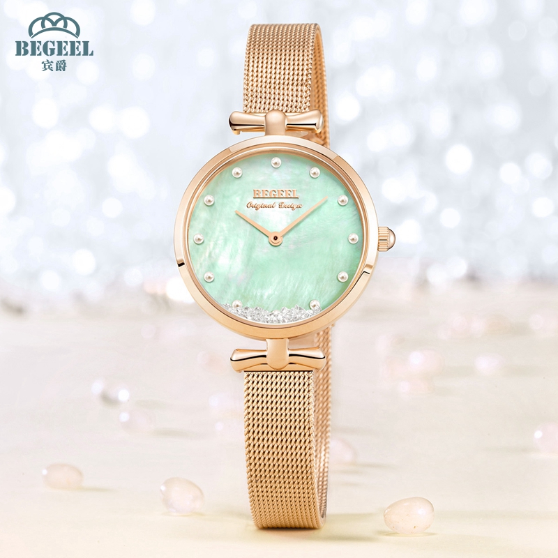 宾爵花心动镶嵌12粒珍珠进口机芯石英女表动态钻时尚防水 女士正品腕表