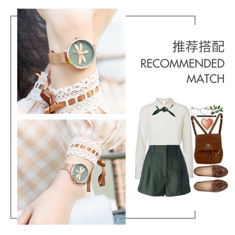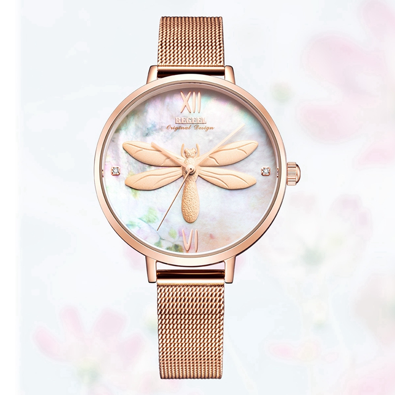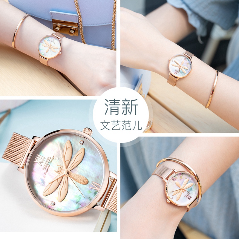 宾爵3D小蝴蝶小蜻蜓浮雕设计精致女表进口机芯防水石英表ins网红时尚女士手表