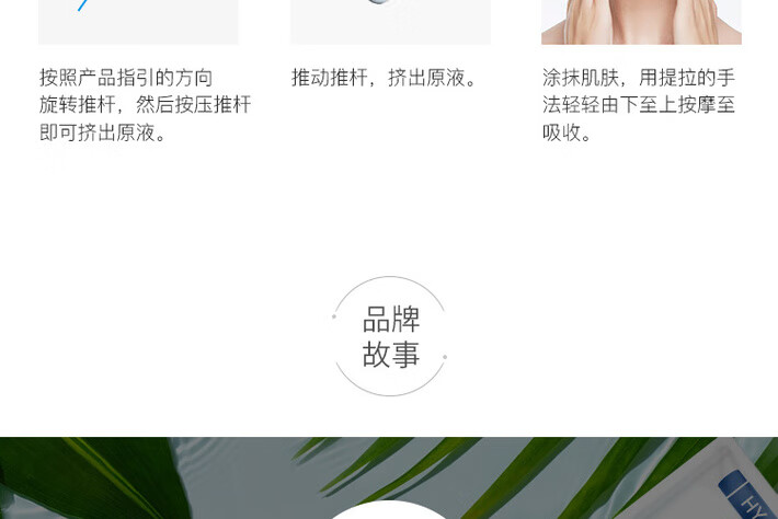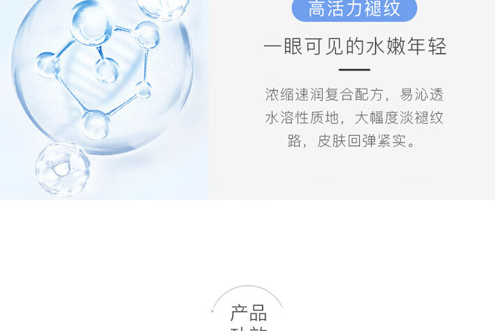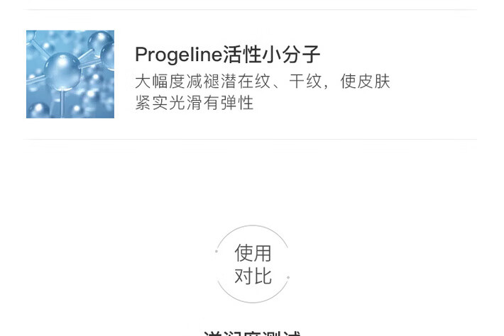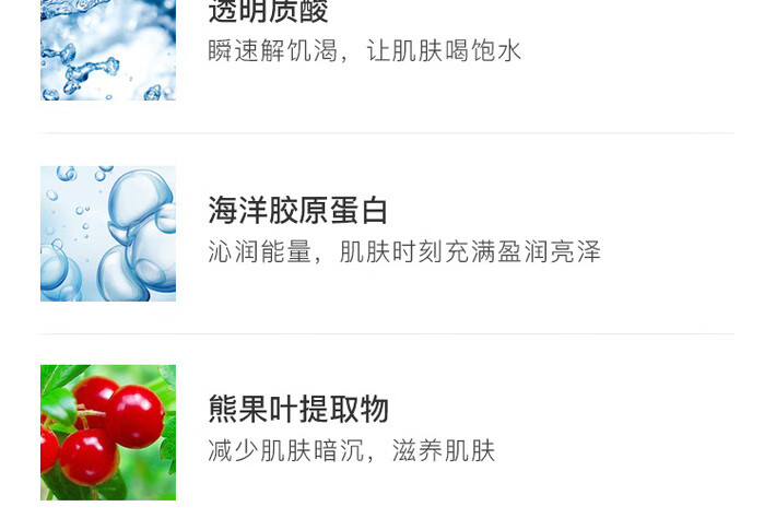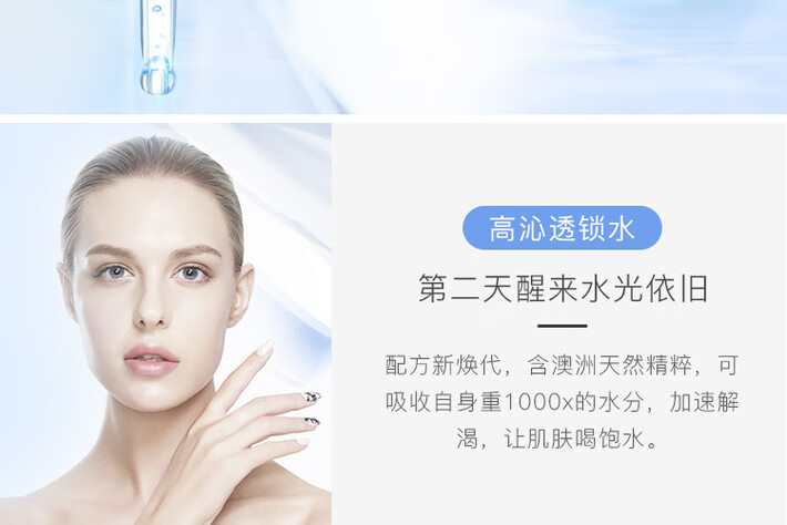 采用了微分子团化玻尿酸和胶原蛋白,无需打针,只需涂抹,即可将玻尿酸和胶原蛋白深入浸透到肌肤真皮层,润泽肌肤、修正表层肌肤弹性、嫩肤、润滑、紧致。
