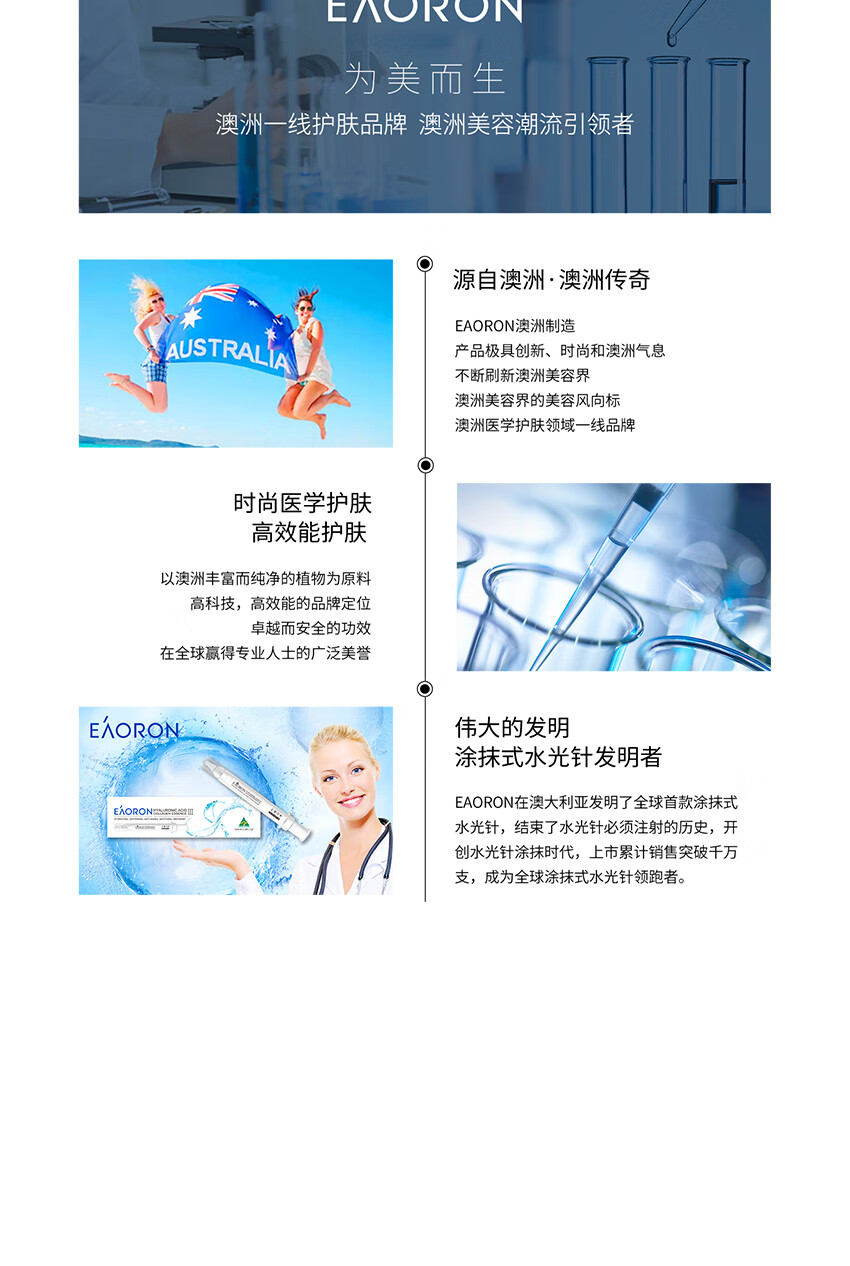 eaoron是澳大利亚的中高档护肤品牌,主要生产适合大部分肌肤使用的护肤品,它家产品天然无添加,敏感肌和孕妇肌也可以安心使用。eaoron除了面膜的价格贵一些,像水光针、美白精华、面霜等都属于性价比极高的好物。澳洲护肤品是公认的好用,而eaoron在澳洲护肤品界的地位举足轻重,可见它的影响力。