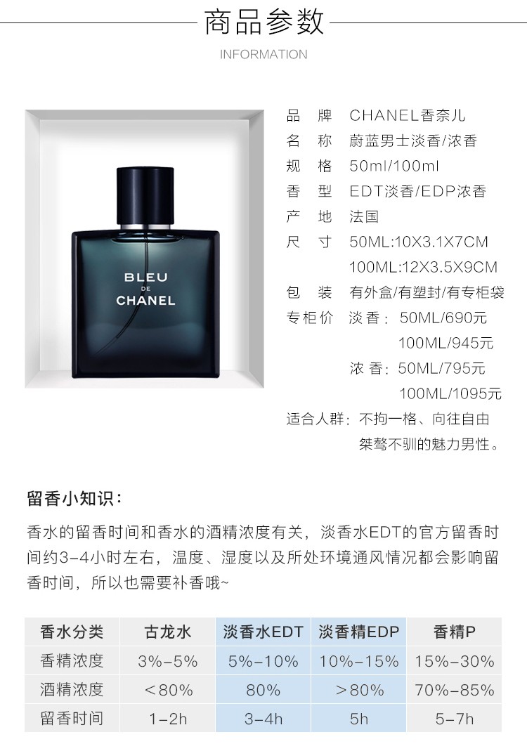 【李现同款】法国CHANEL香奈儿Bleu蔚蓝男士【EDT-淡香水】 50ml100ml