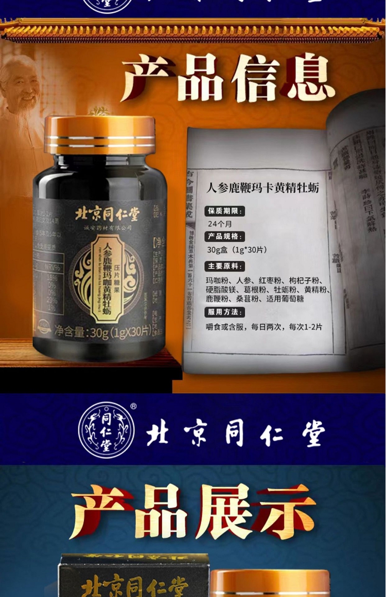 日の元气参蛹雄花牡蛎肽片10片/盒男性人参片海参肽片牡蛎肽片鹿鞭片保健品人参备孕