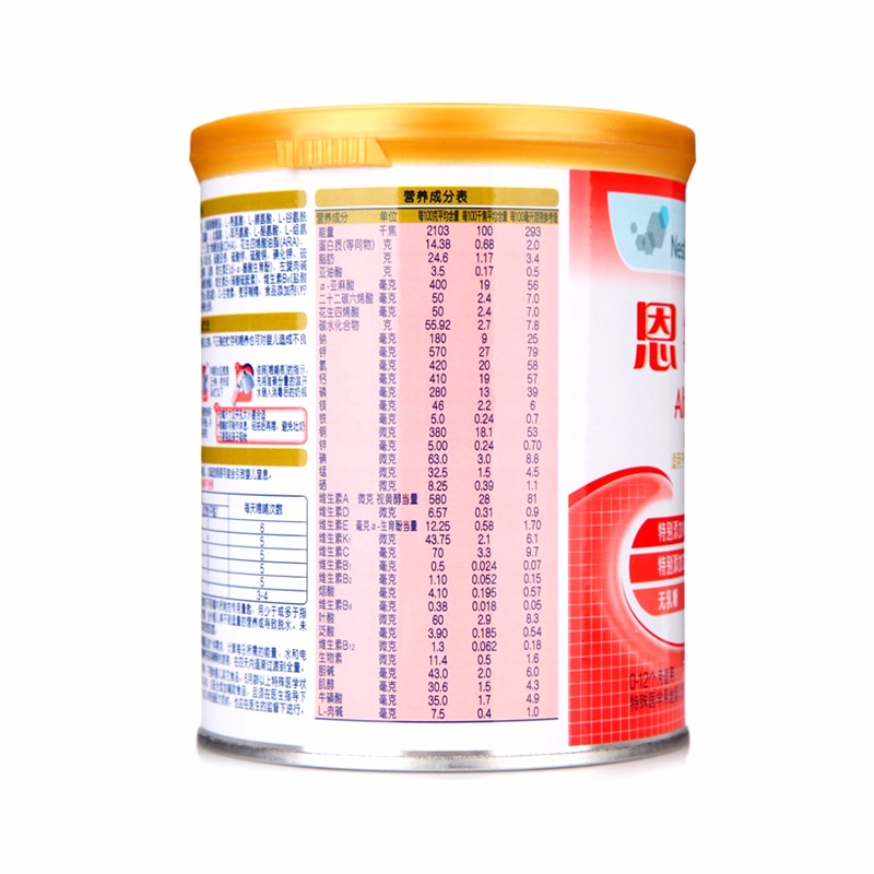 氨基酸配方粉,针对对牛奶蛋白重度过敏的宝宝食用,400g一罐,保质期24个月。于阴凉干燥处保存。