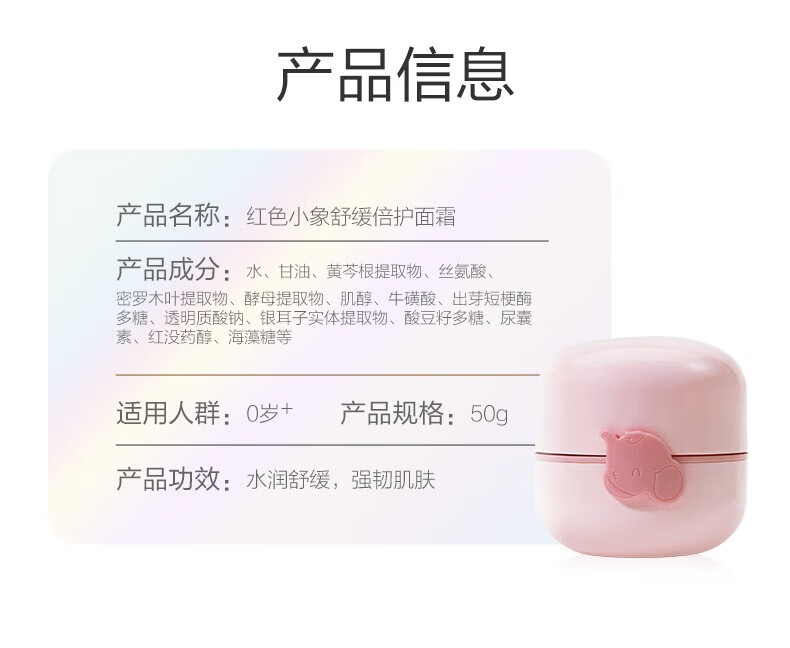 红色小象婴儿多效霜面霜 50G 0-12个月儿童保湿霜润肤霜乳液婴幼儿补水滋润