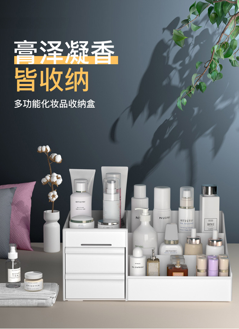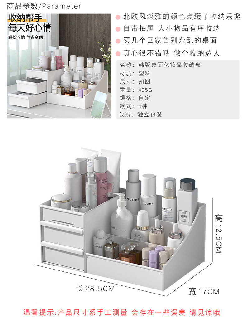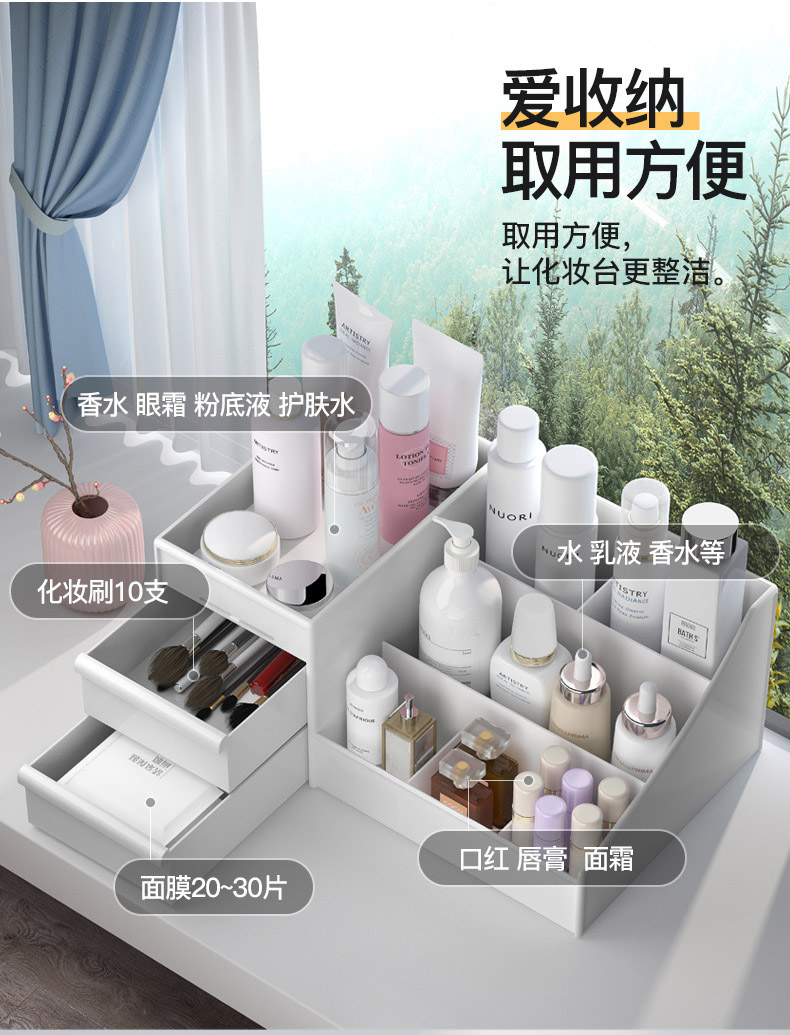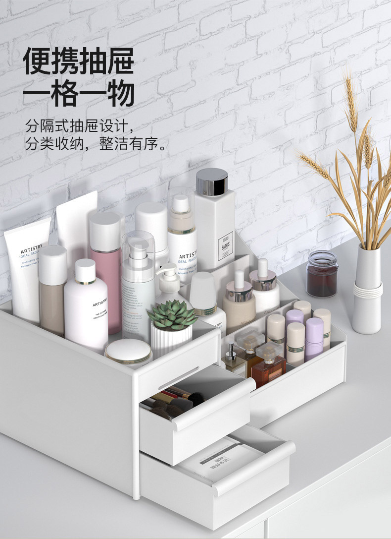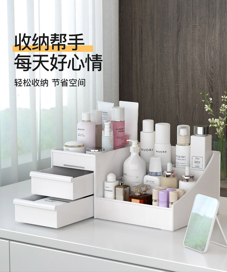韩版化妆盒桌面化妆品收纳盒抽屉式塑料首饰储物整理箱收纳置物架-cj