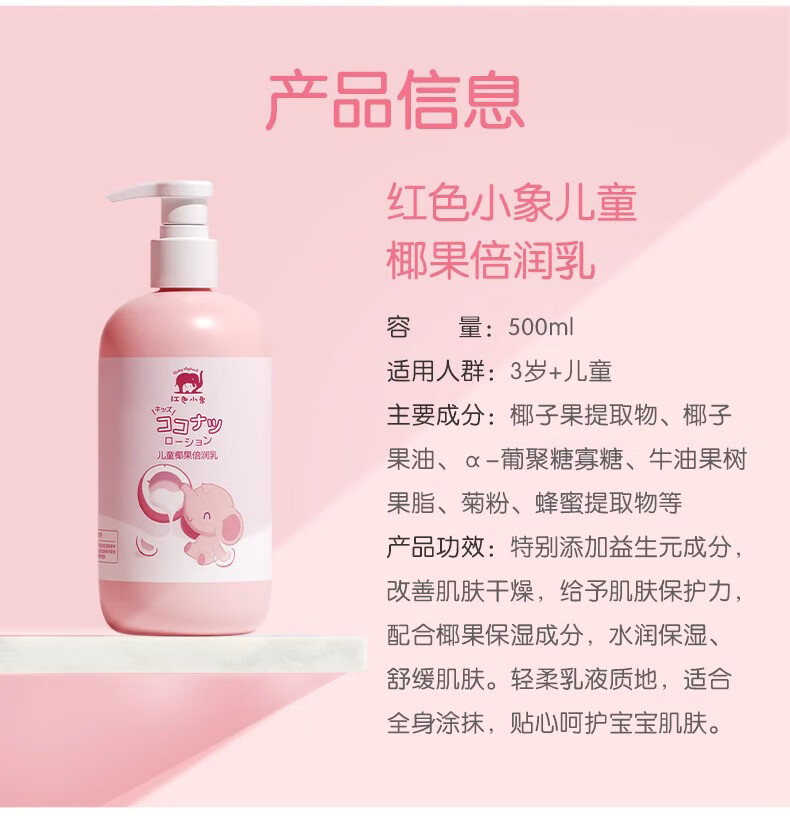 【品牌直供】红色小象全家润肤乳400ml婴儿童宝宝身体乳保湿滋润秋冬护肤幼儿面霜