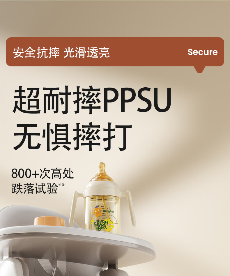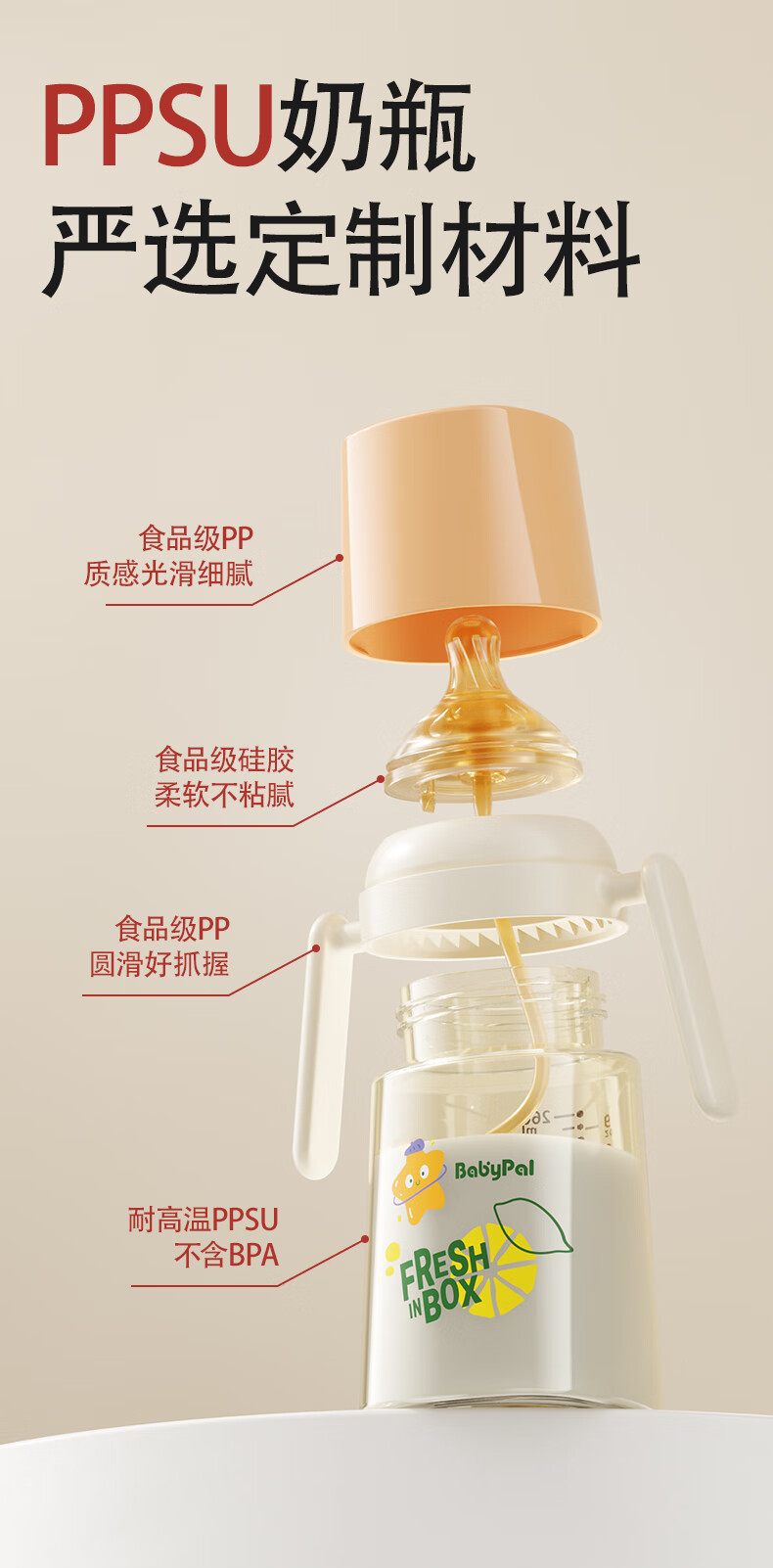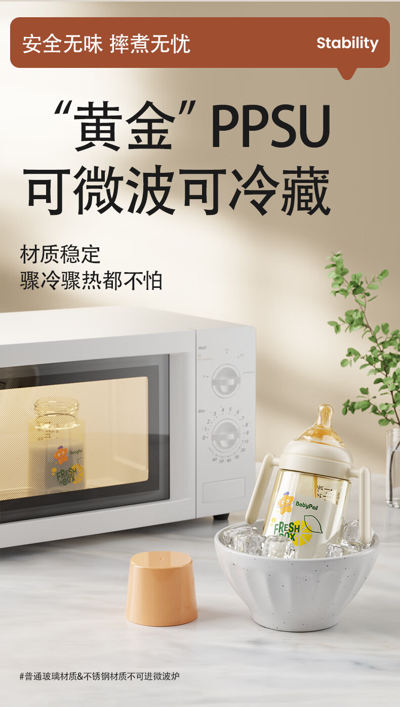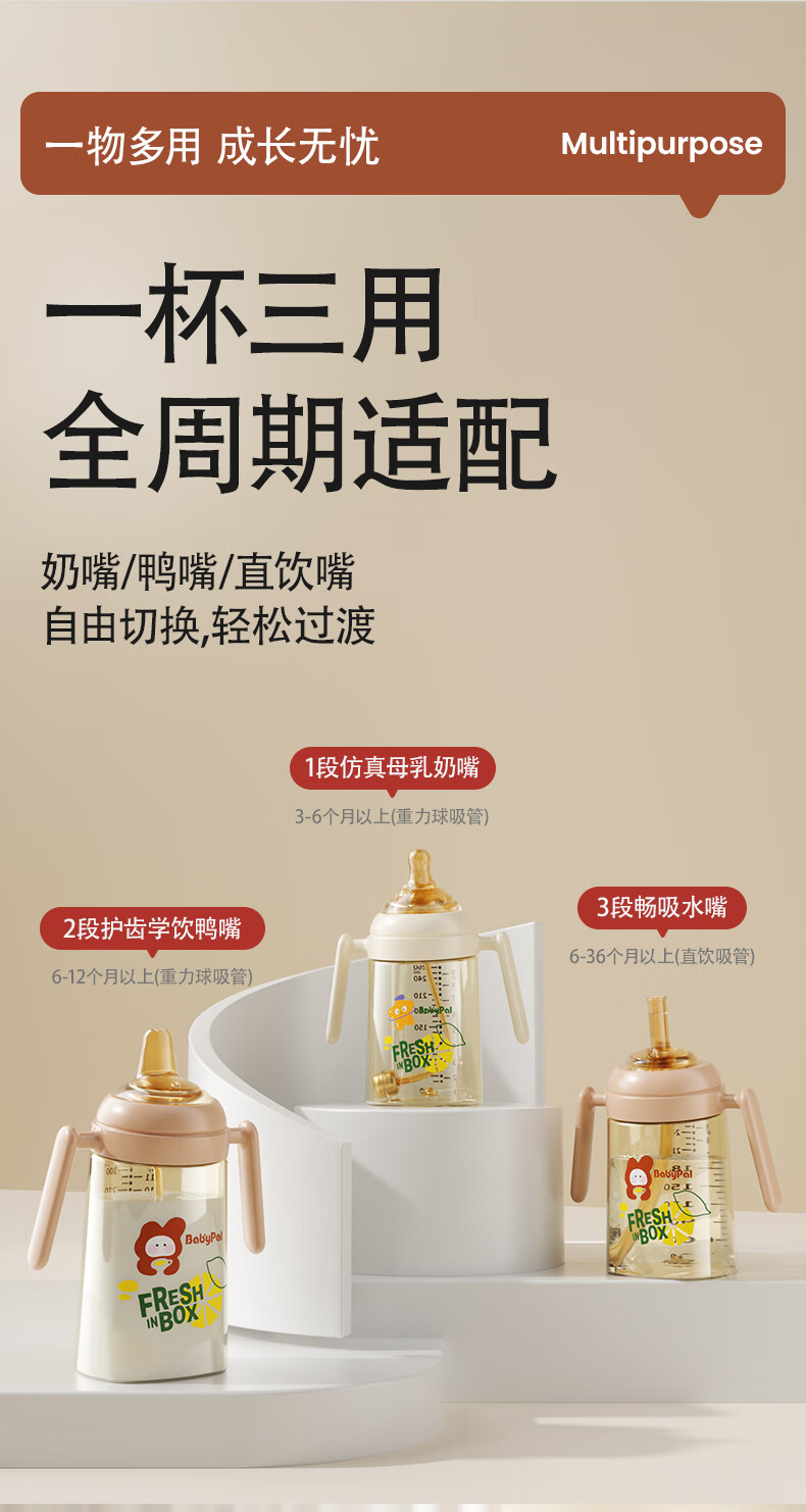 宝德PPSU黄金分阶成长奶瓶礼盒一瓶三用奶嘴鸭嘴吸嘴宽口ppsu奶瓶