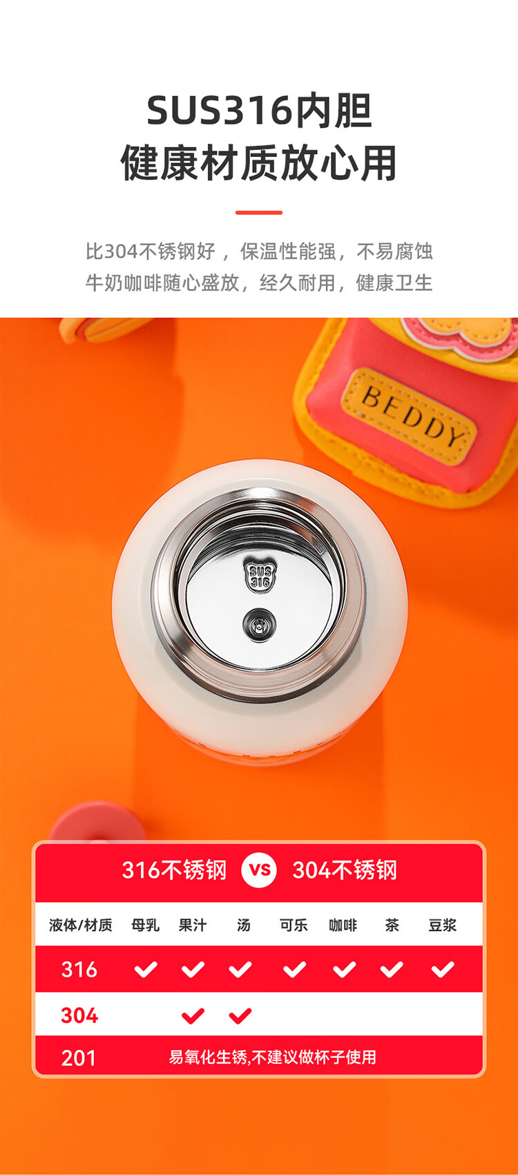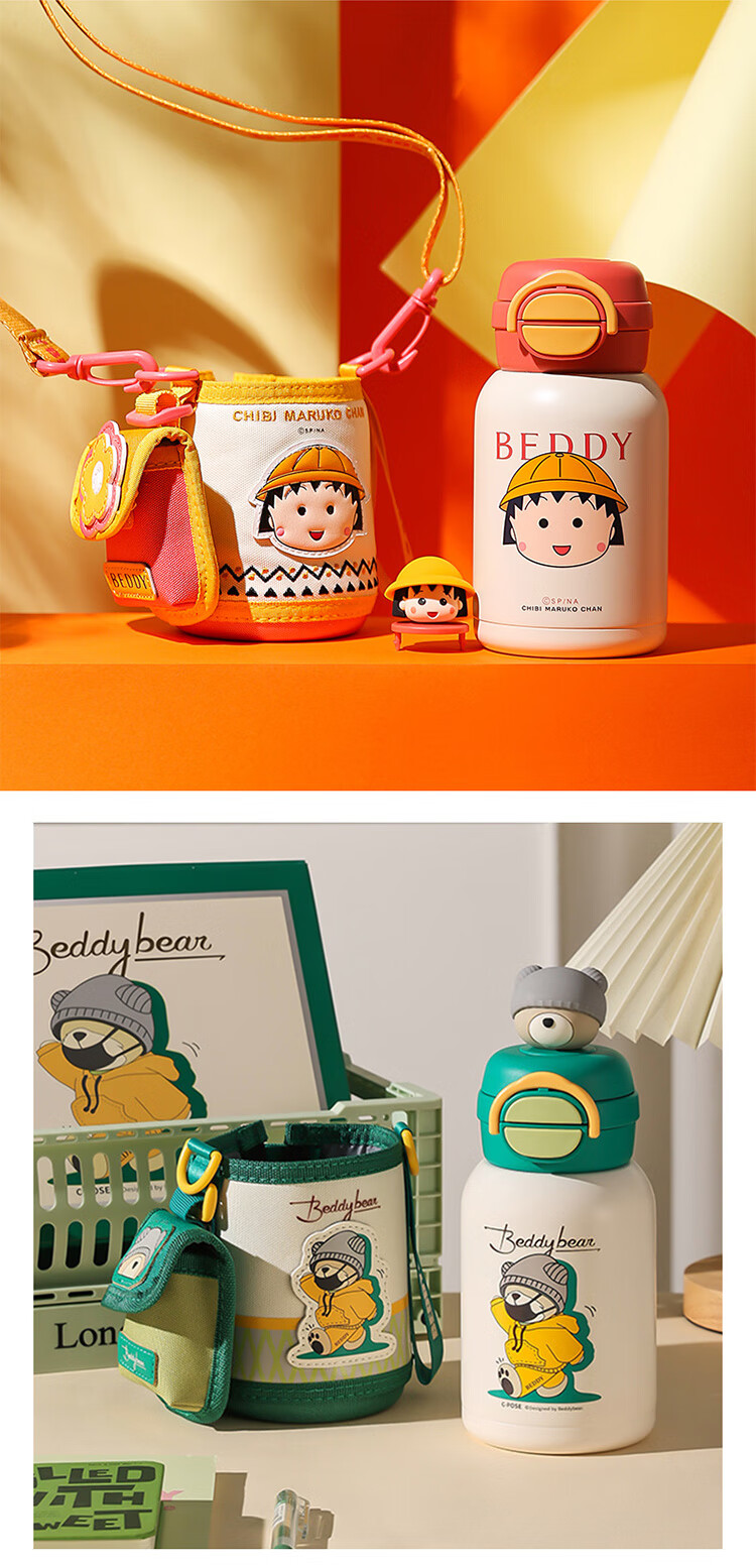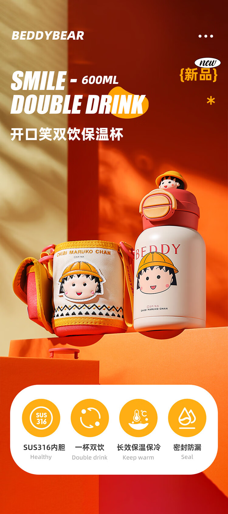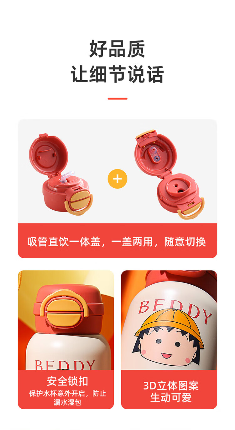 2023重磅新款保温水壶 ,一盖双饮式杯盖,316医用亮面不锈钢内胆 ,可爱可拆硅胶心情配饰。