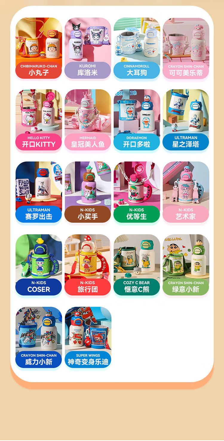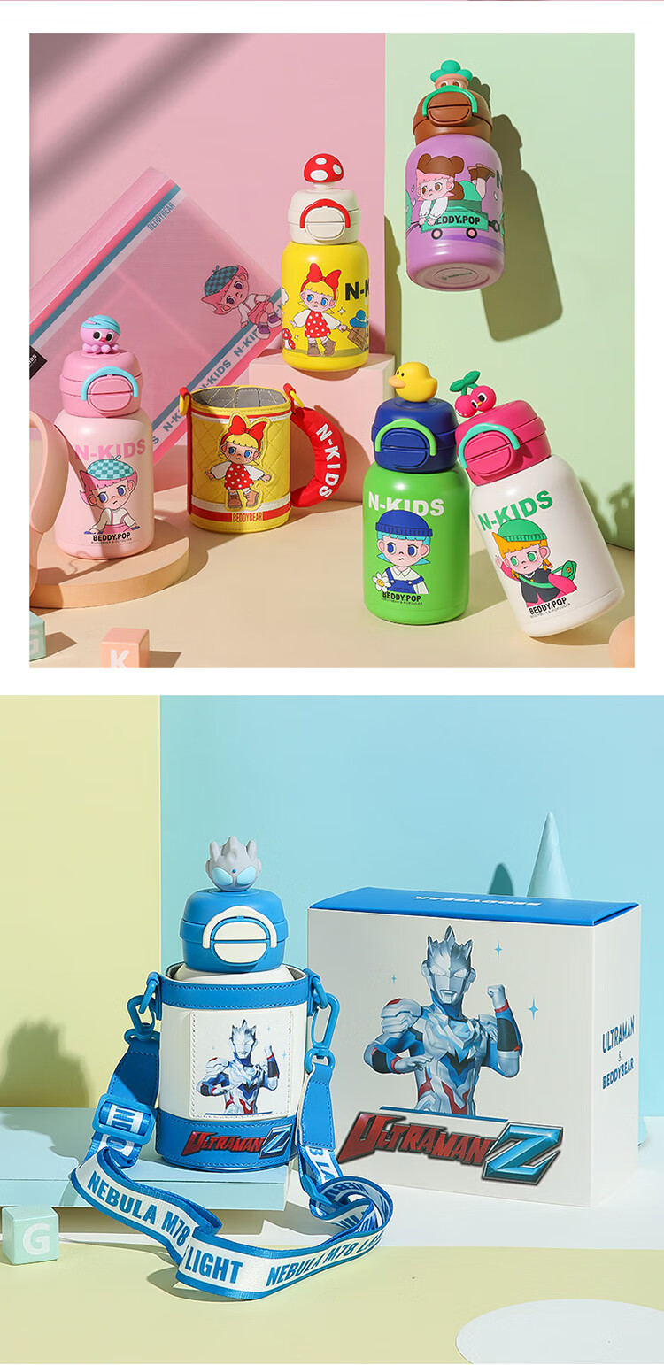 【送贴纸】奥特曼kitty猫儿童保温杯男孩316不锈钢食品级小学生水壶大容量吸管水杯600ml