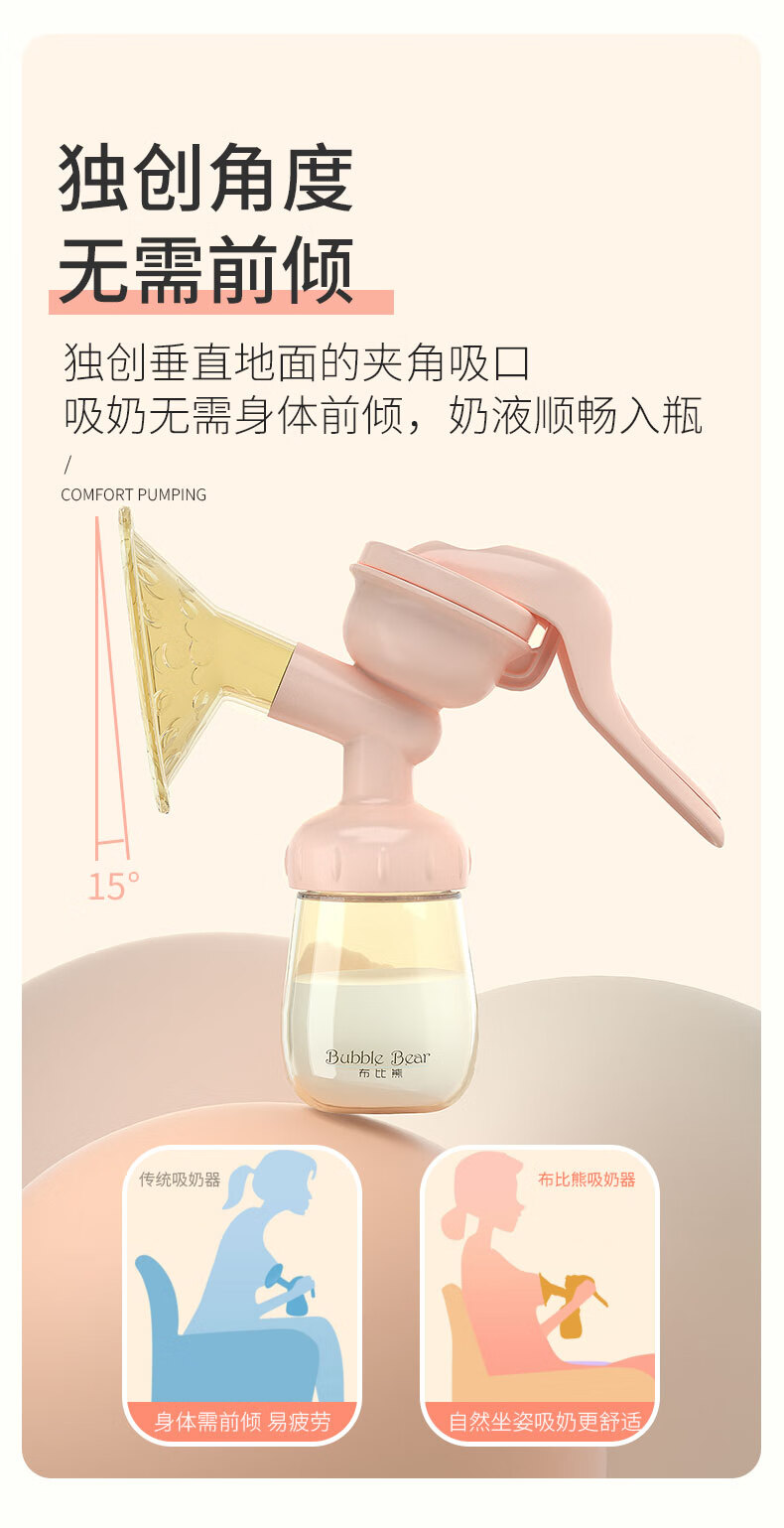 反斜度革命性的设计,轻松躺着吸,让产后妈妈吸奶更轻松,缓解长时间不正确的吸奶姿势带来的痛苦!