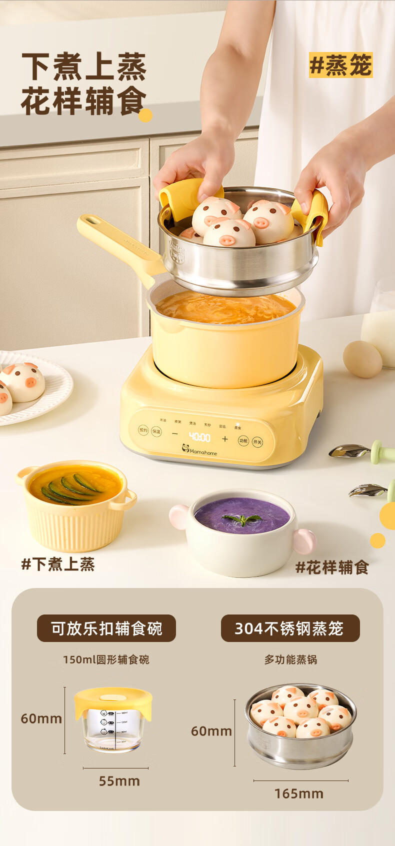 一站全备齐,分月龄辅食料理 5种方式精细烹饪,分月龄智能调控