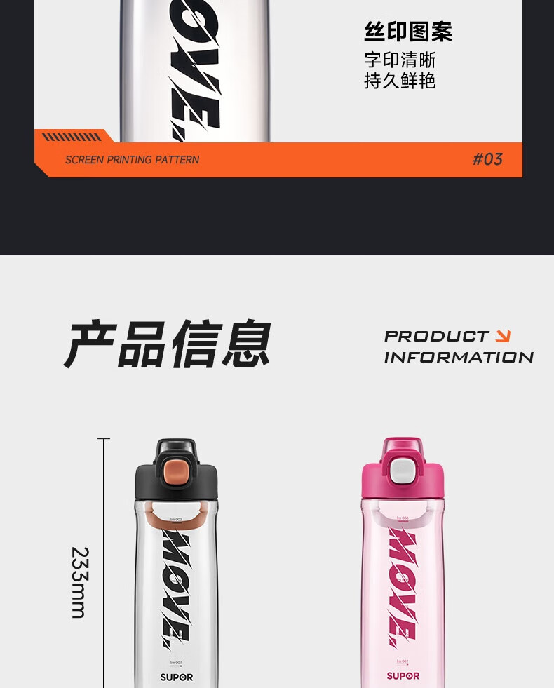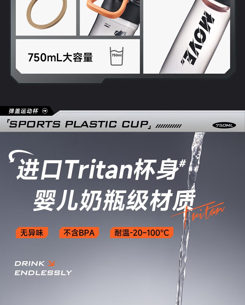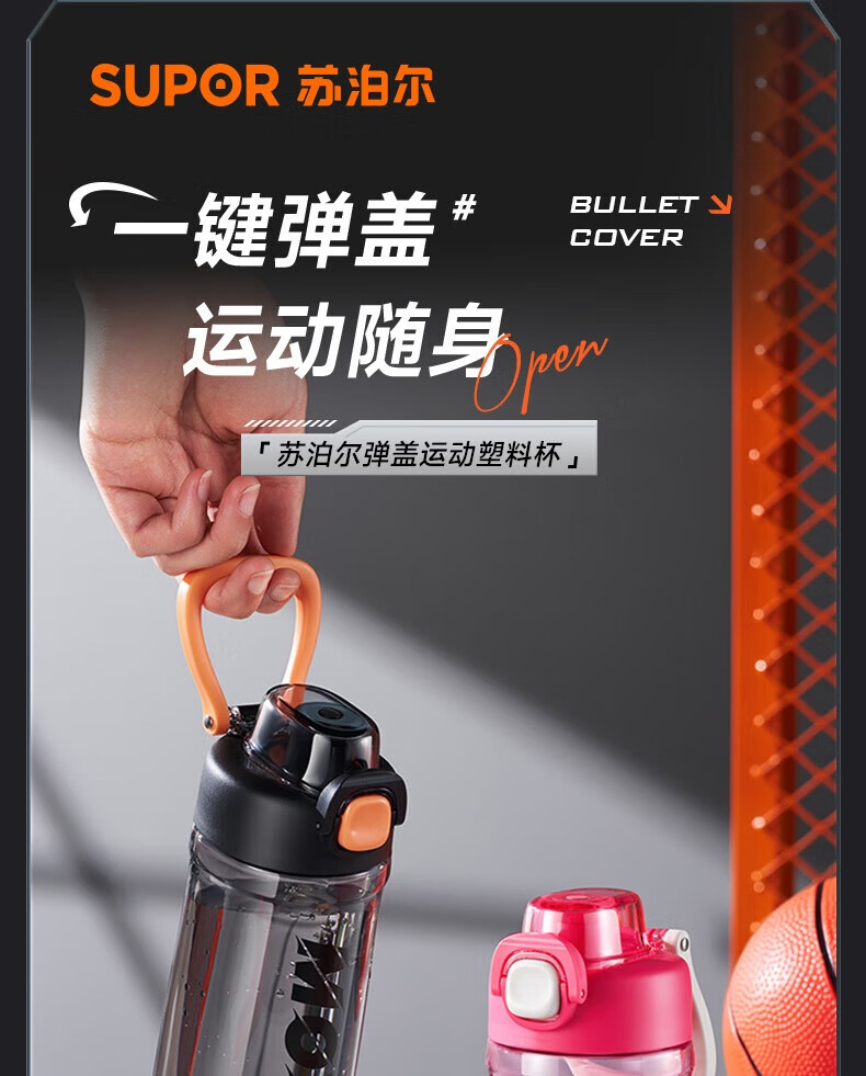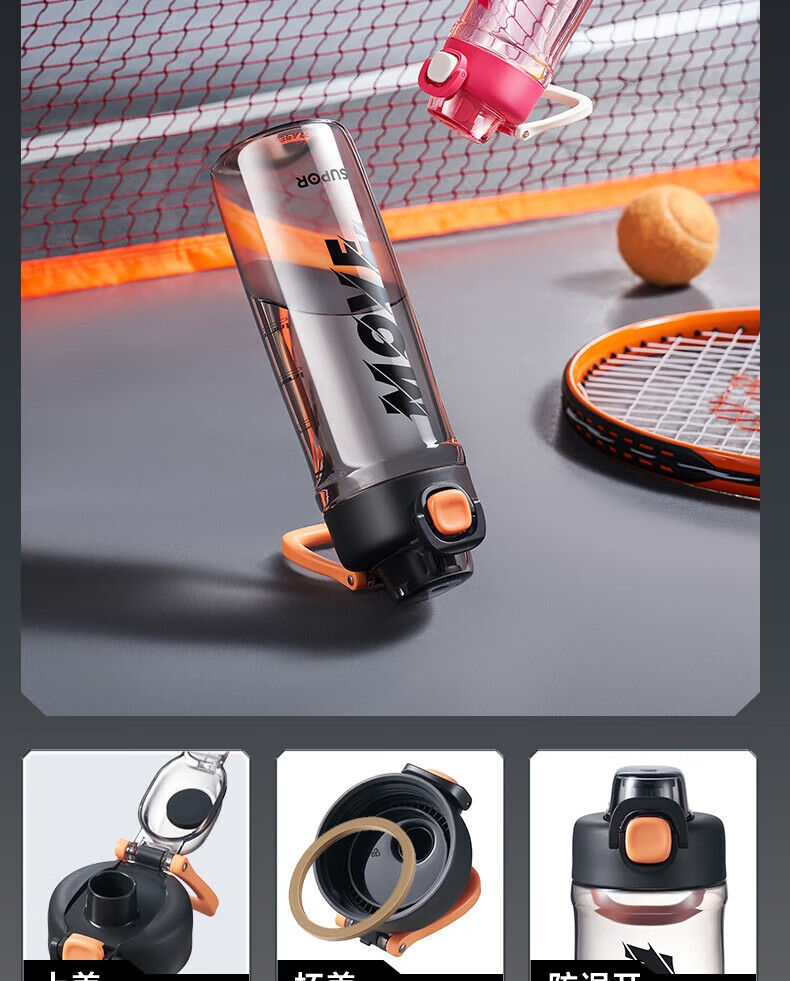 "安全:美国FDA认可Tritan材质,不含双酚A 便捷:一键开盖,随时随心畅饮无阻 强韧:耐摔打挤压,不易老化脆裂"