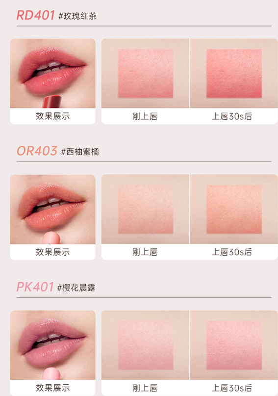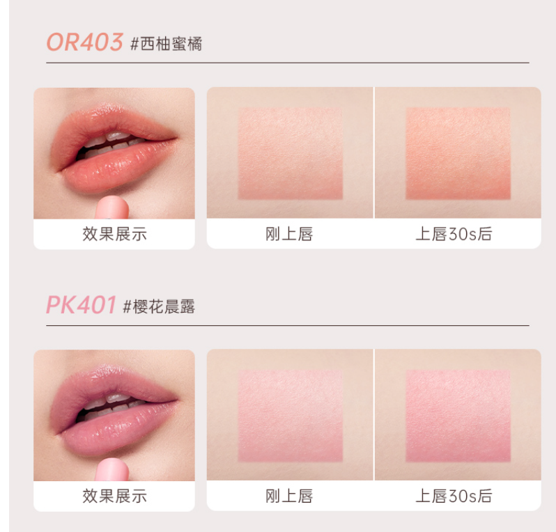 天然变色润唇 素颜淡妆好气色 一管多用 时刻啵啵美唇