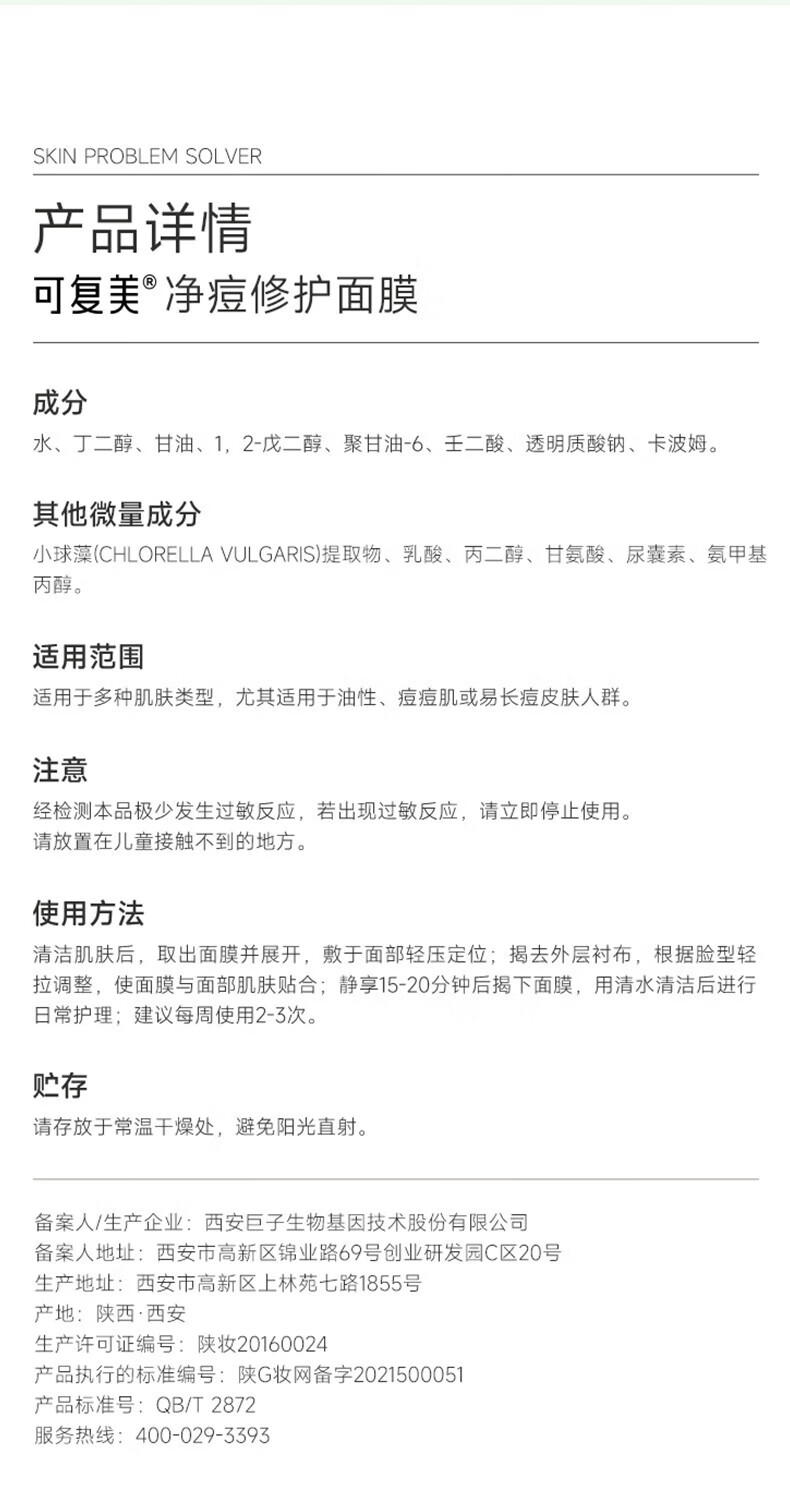 敷尔佳清痘净肤修护贴面膜5片 水杨酸痘肌油痘肌补水保湿舒缓净痘