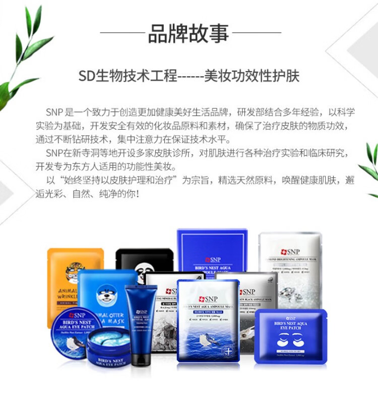 (株)艾思迪生命工学成立于2008年9月,是一个致力于创造更加健康美好的生活,研发部结合多年经验,以科学实验为基础,开发安全有效的化妆品原料和素材,确保了治疗皮肤的物质专利,通过不断钻研技术,集中注意力在保证技术水平上,活跃在K-beauty潮流中的企业。SNP是(株)艾思迪生命工学 开发(运营)的韩国品牌。
