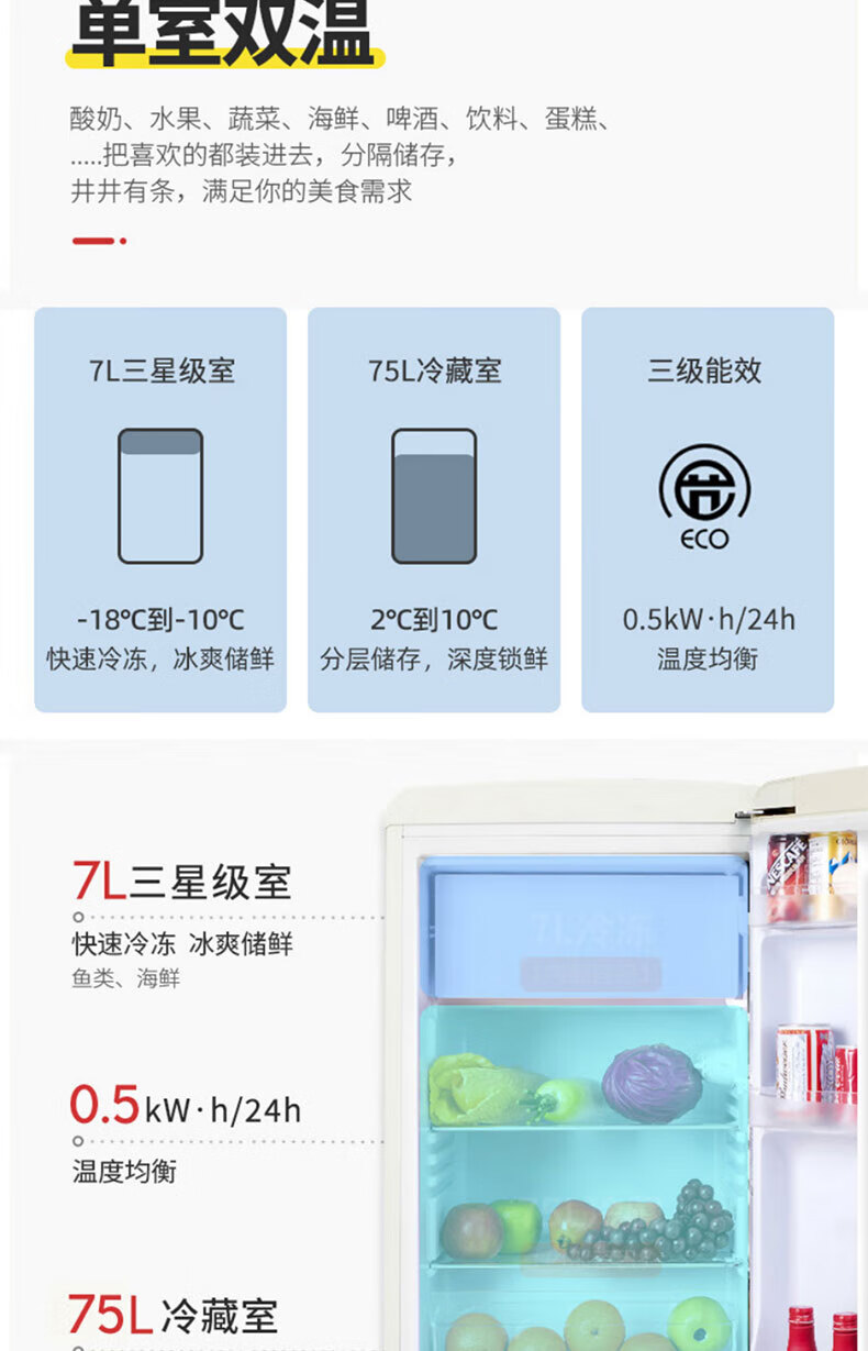 西屋(Westinghouse)单门复古冰吧冷藏冰箱家用办公室饮料酒水小型复古冰箱230L 一级能效 SC-230M