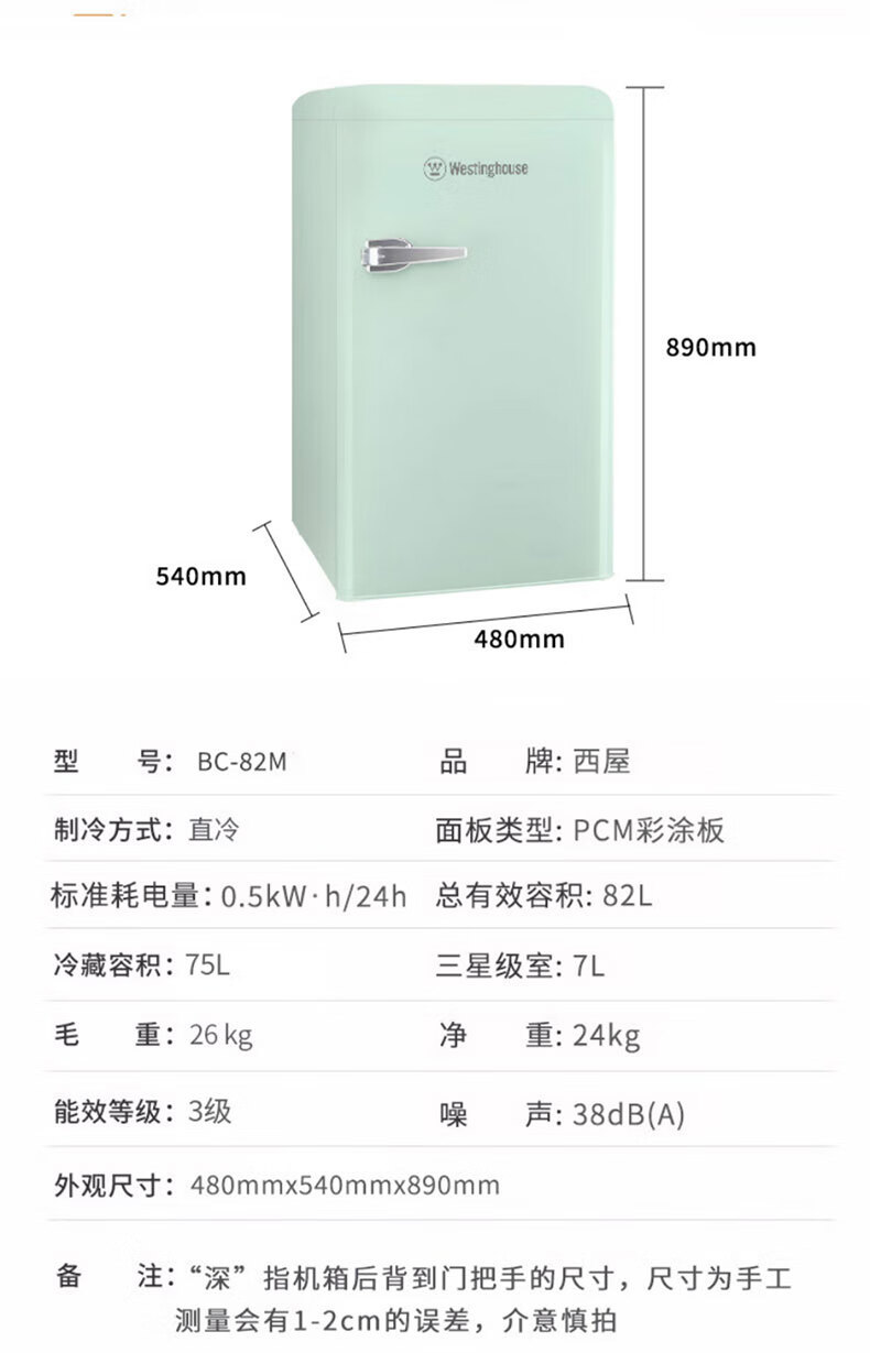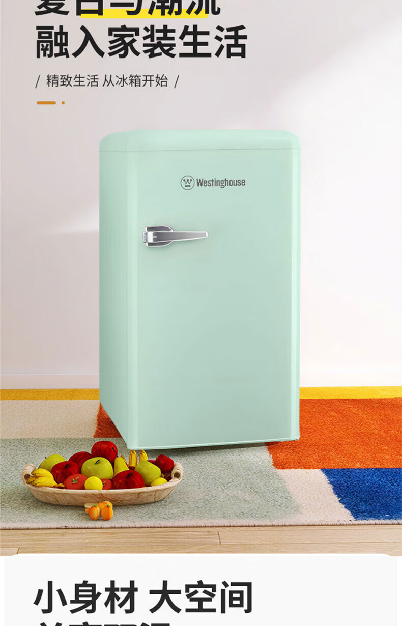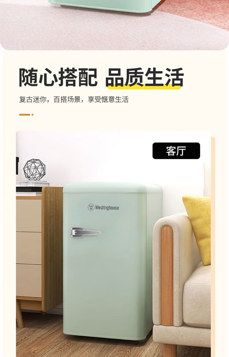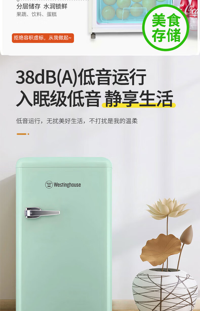 西屋(Westinghouse)单门复古冰吧小型复古家用客厅办公室全冷藏透明玻璃冰箱酒水茶叶饮料保鲜大师奶酪白122L