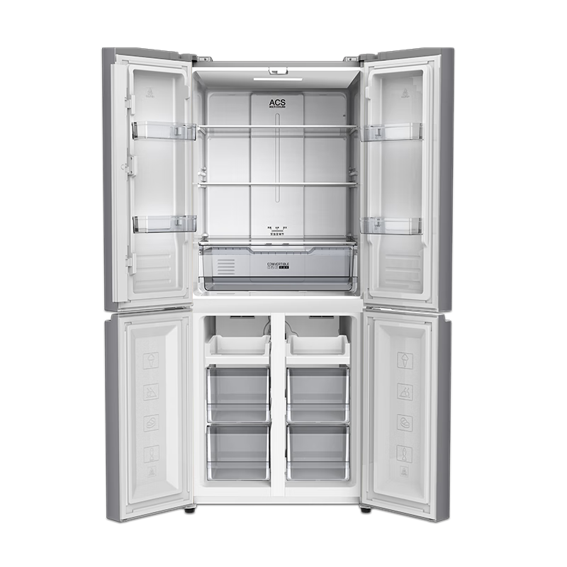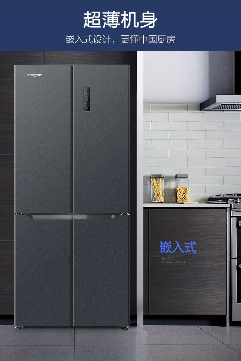 西屋(Westinghouse)485升零嵌十字双开四开门(玻璃)超薄嵌风冷无霜一级变频家用电冰箱BCD-WF485M700W典雅白