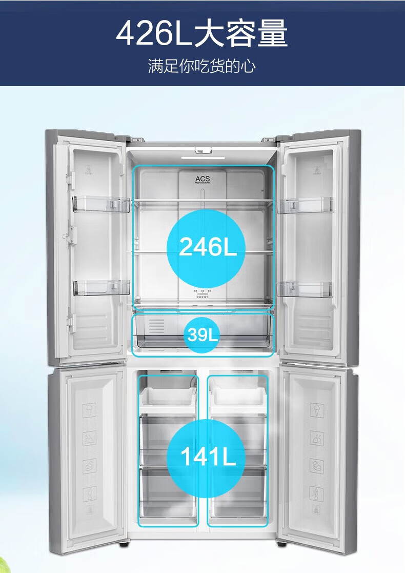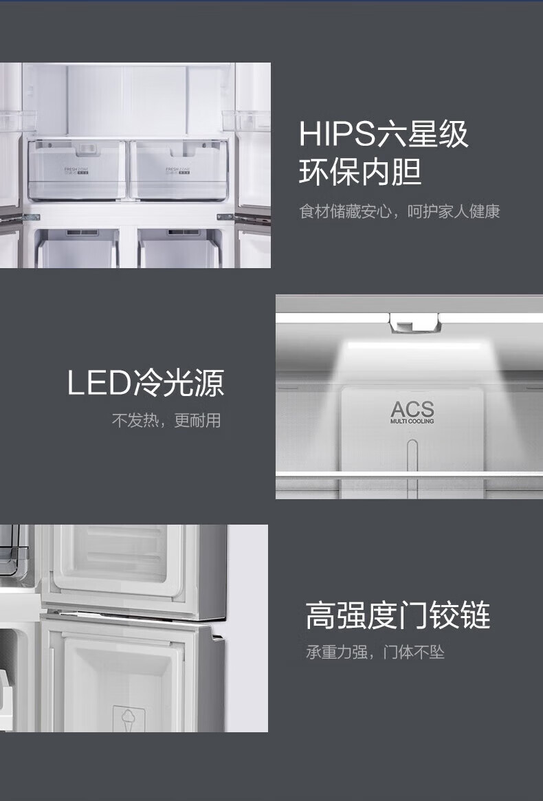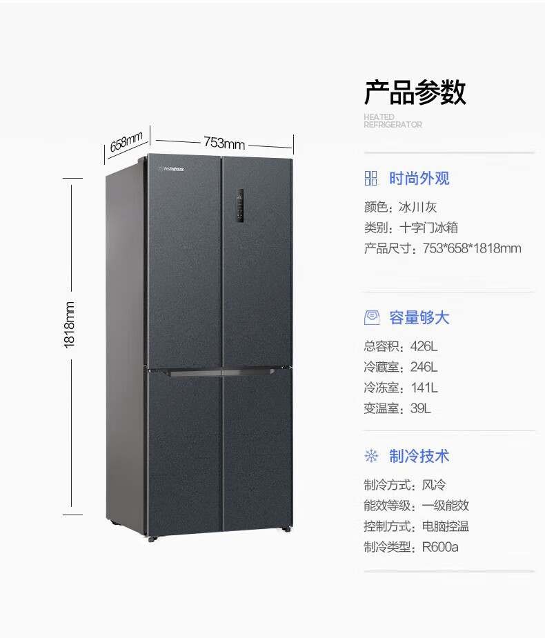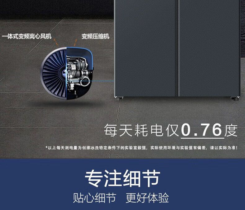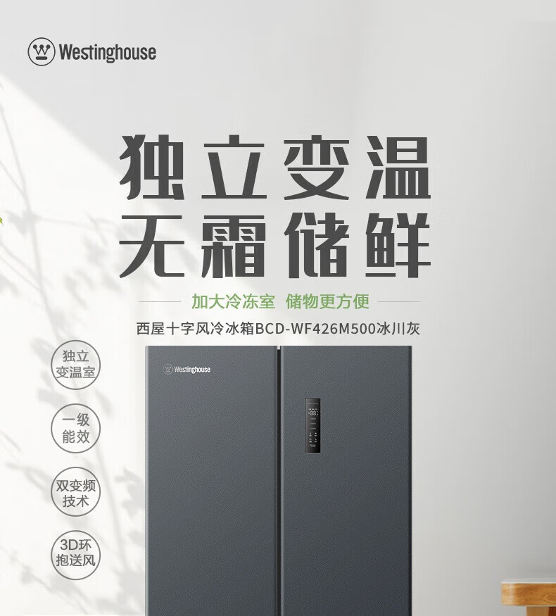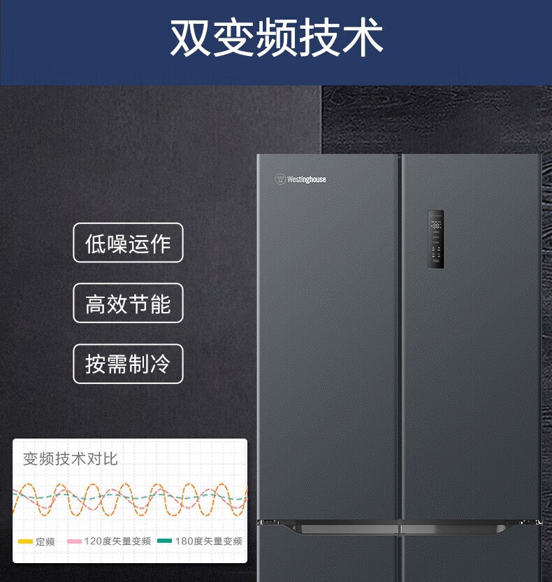 西屋(Westinghouse)540升冰箱双开门大容量对开门家用冰箱一级能效变频风冷无霜BCD-WF540M500冰川灰