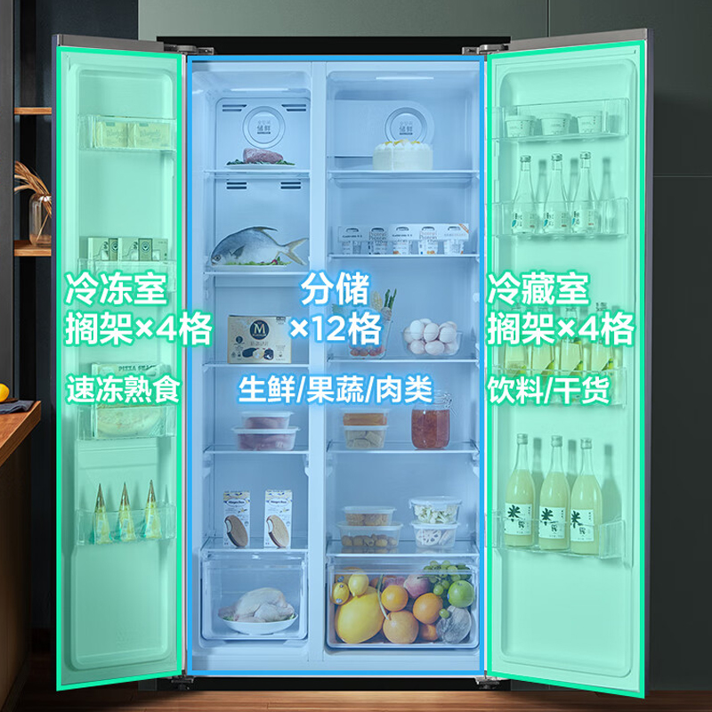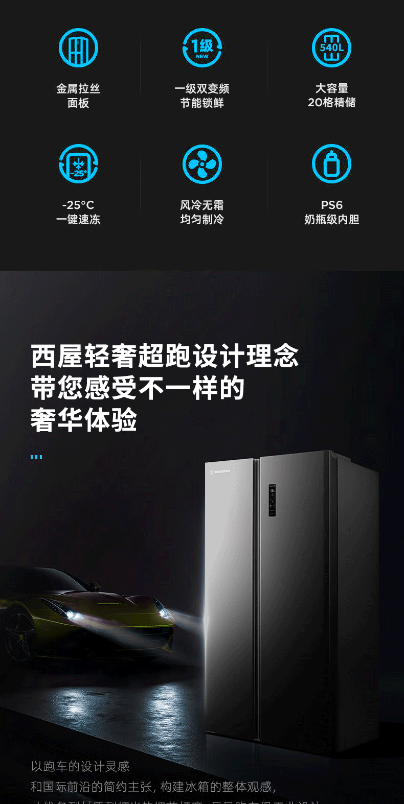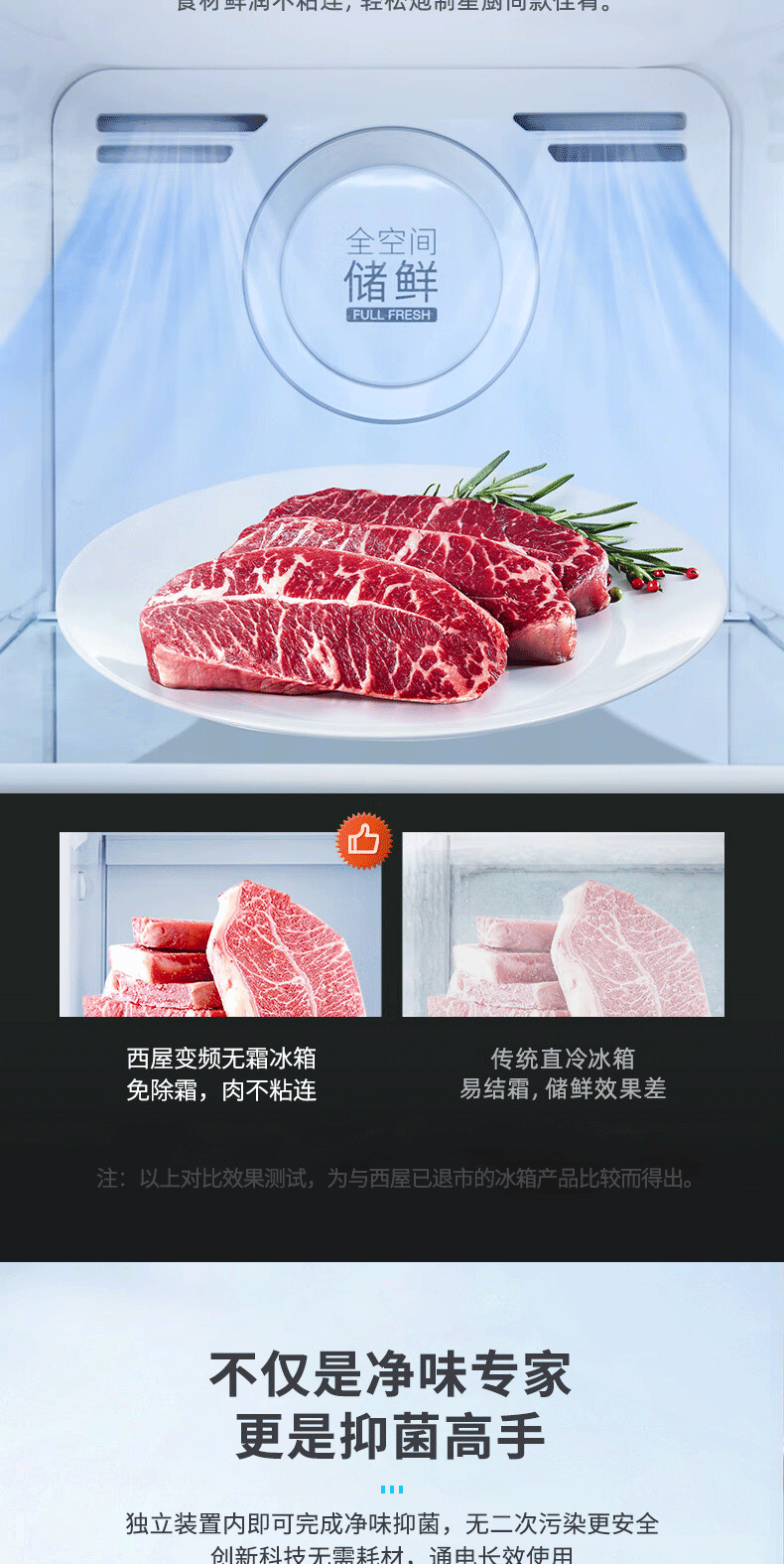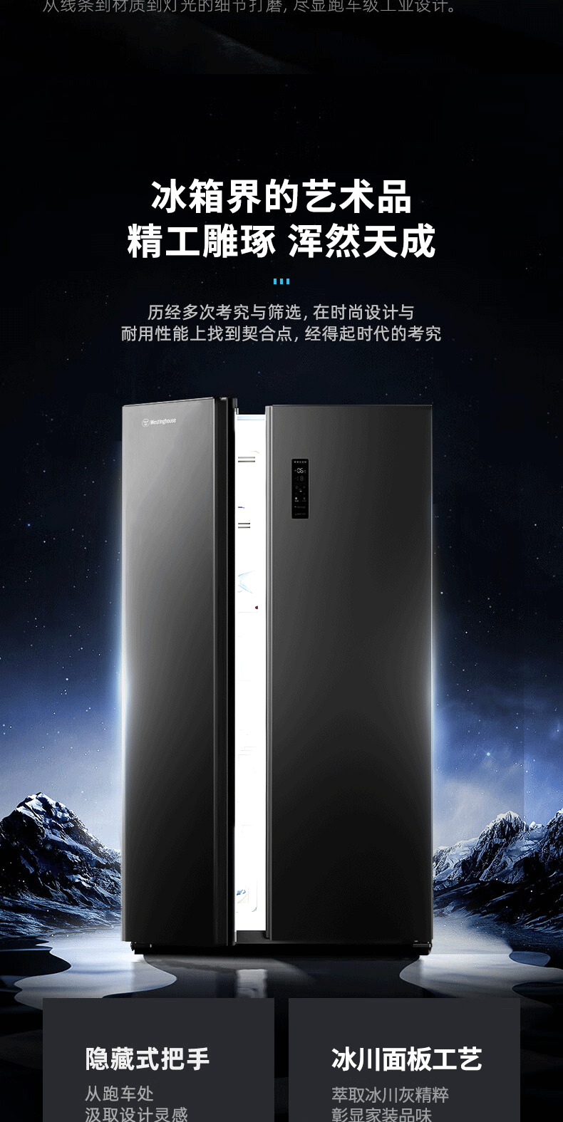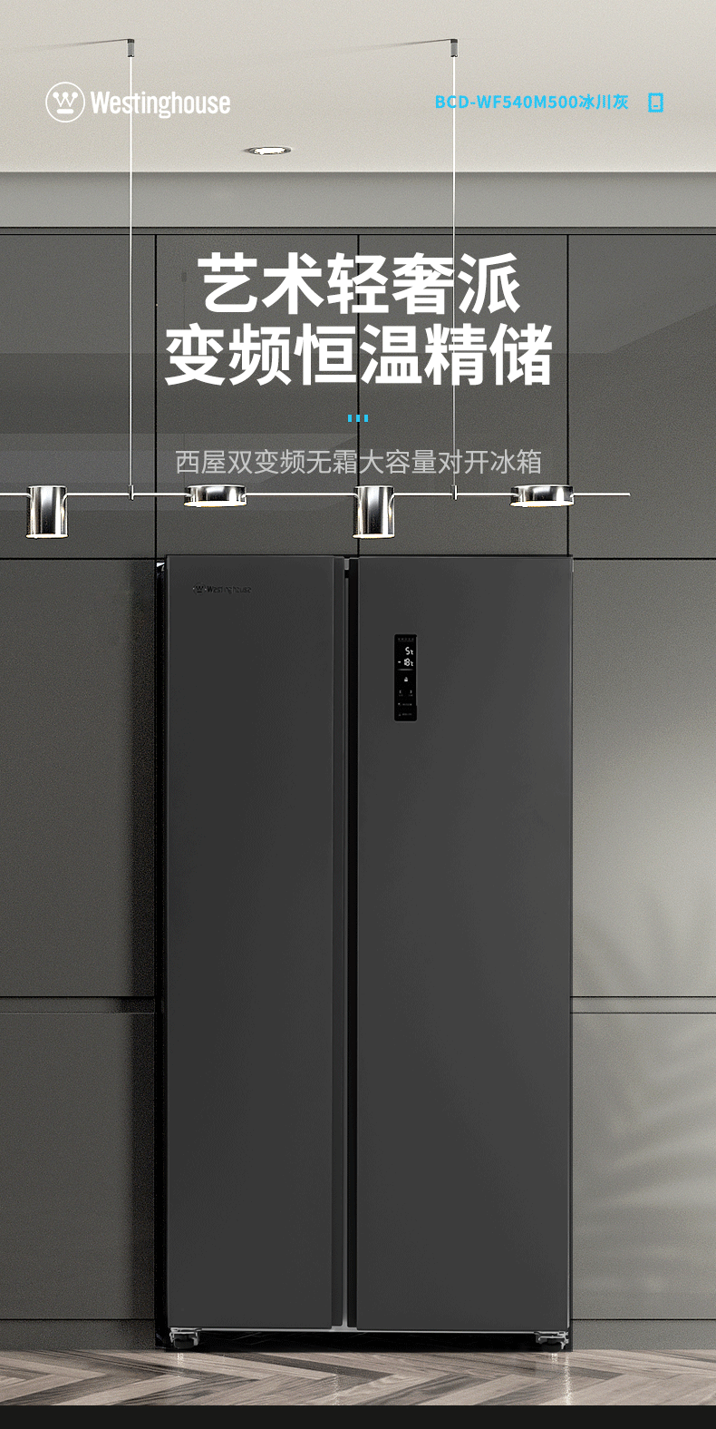 西屋(Westinghouse)独立变温十字对开门426升风冷无霜零度保鲜家用大冰箱一级能效BCD-WF426M500冰川灰