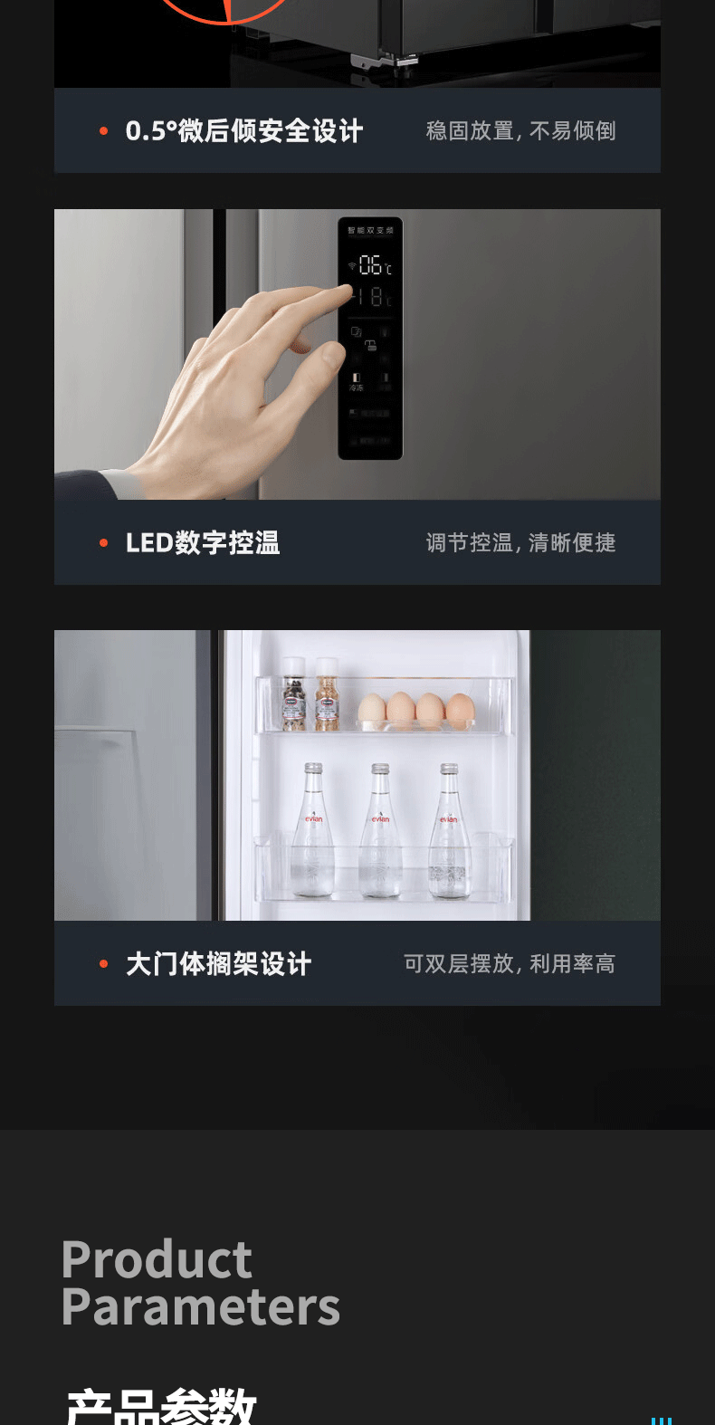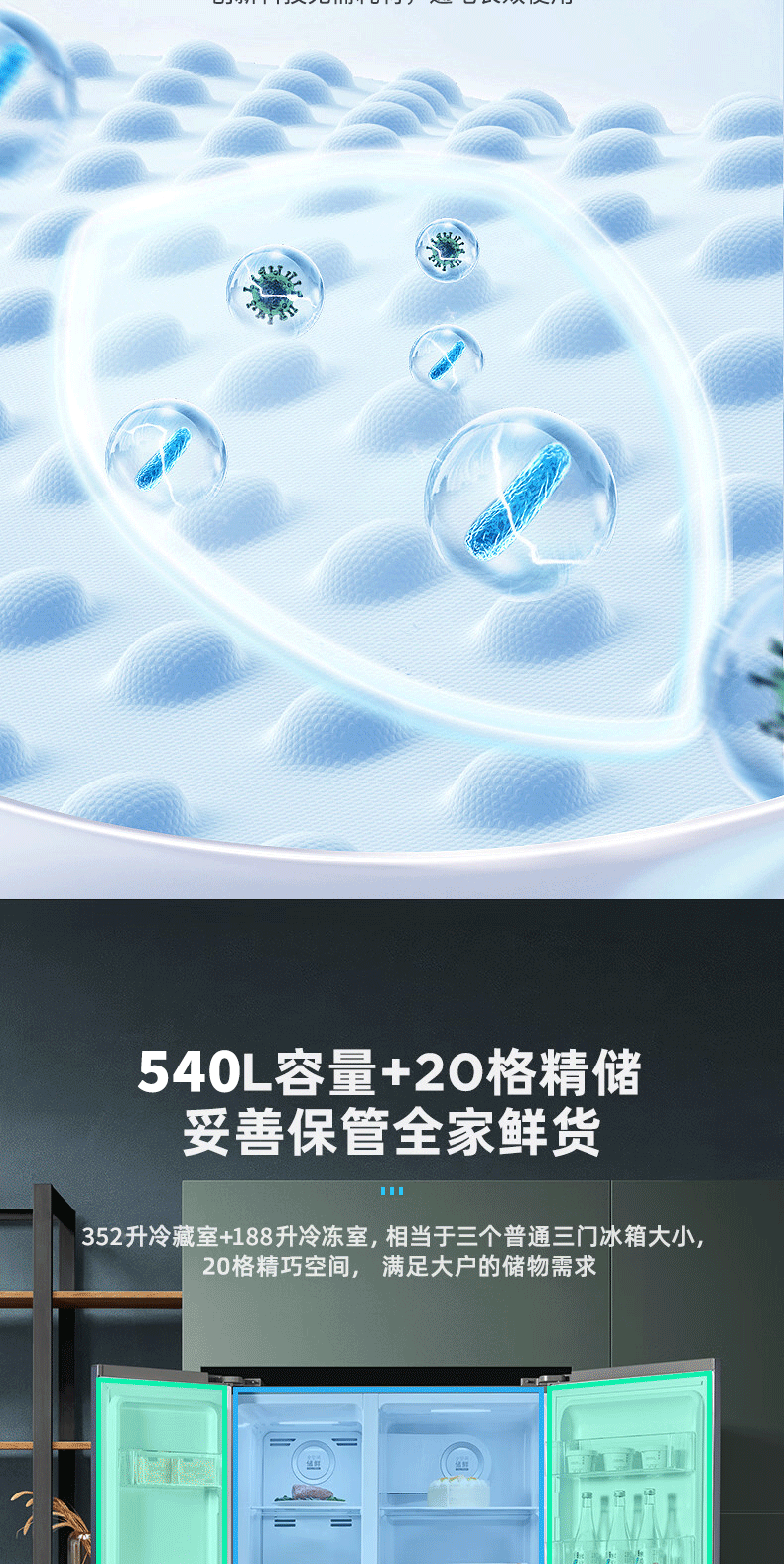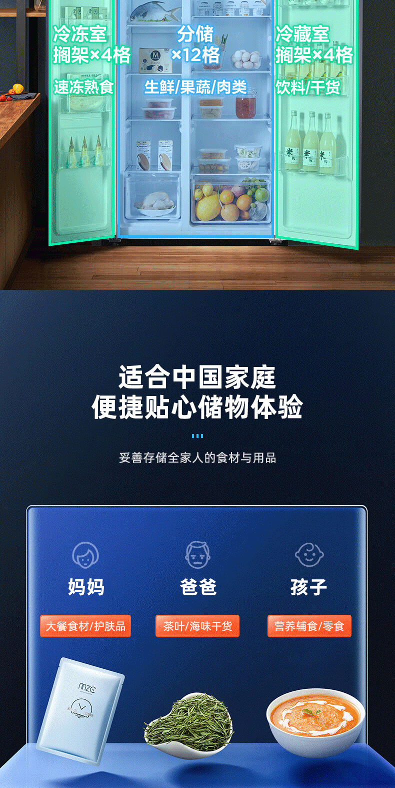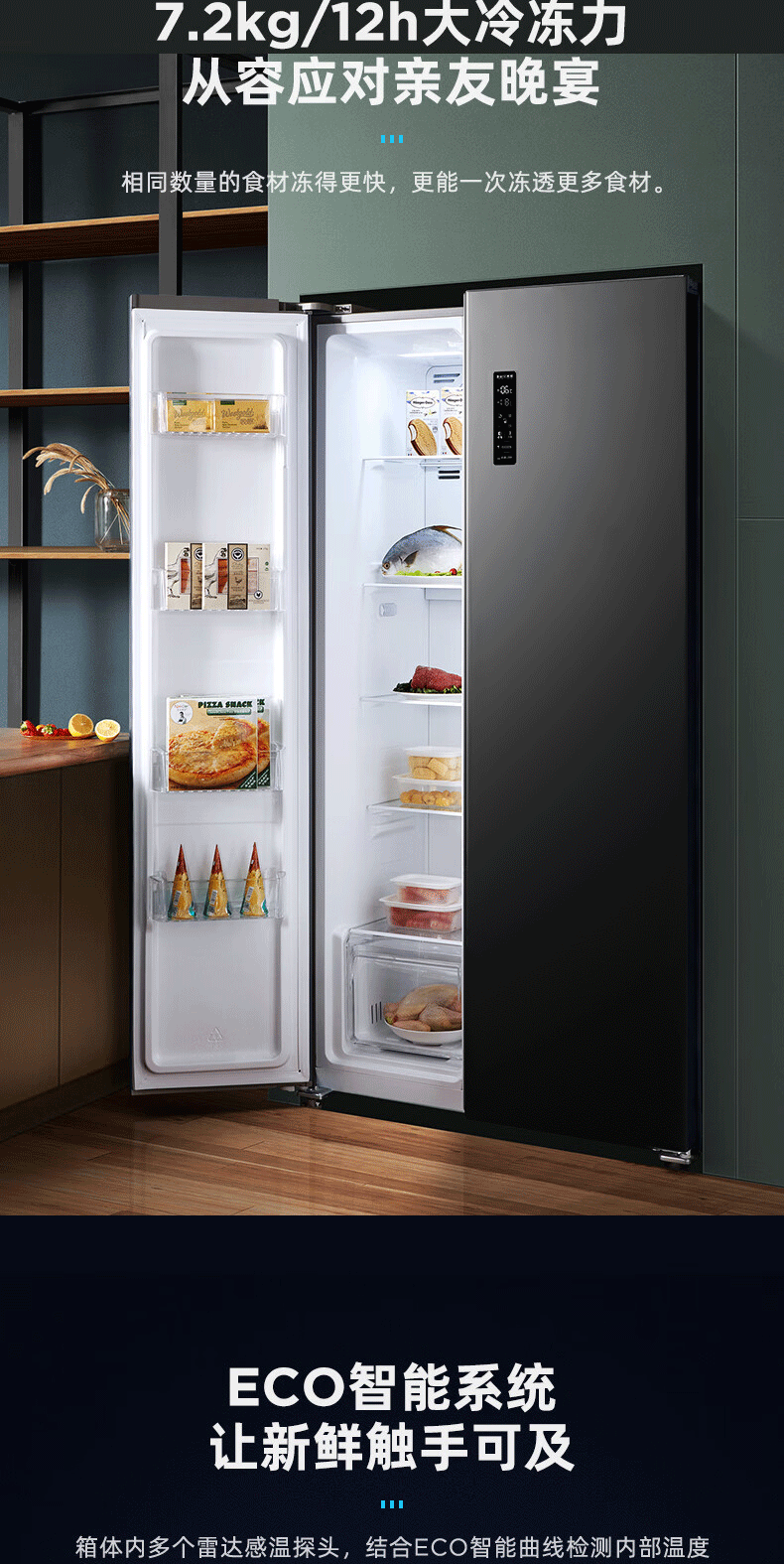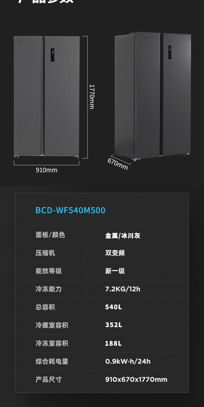 西屋(Westinghouse)独立变温十字对开门426升风冷无霜零度保鲜家用大冰箱一级能效BCD-WF426M500冰川灰
