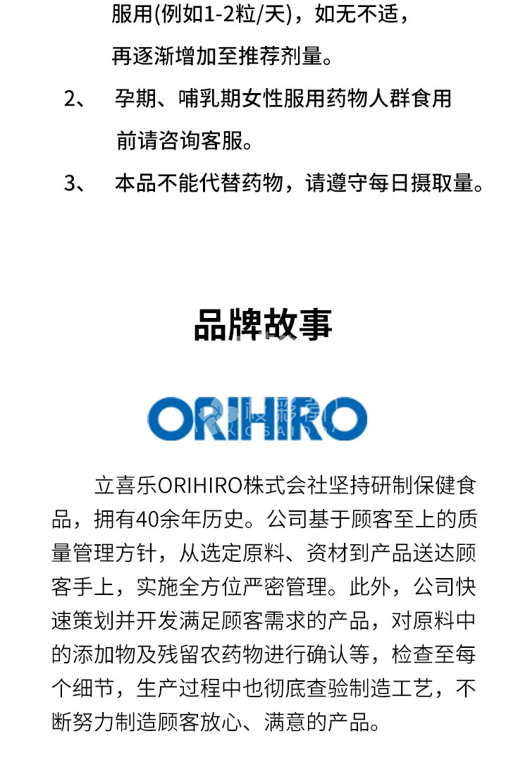 ORIHIRO成立于1972年,是日本的保健品品牌,旗下产业链成熟完备,业务范围覆盖日本全国,致力于为消费者生产健康放心的保健品。主要产品有香醋胶囊、酵素胶囊、鱼油精华胶囊等。