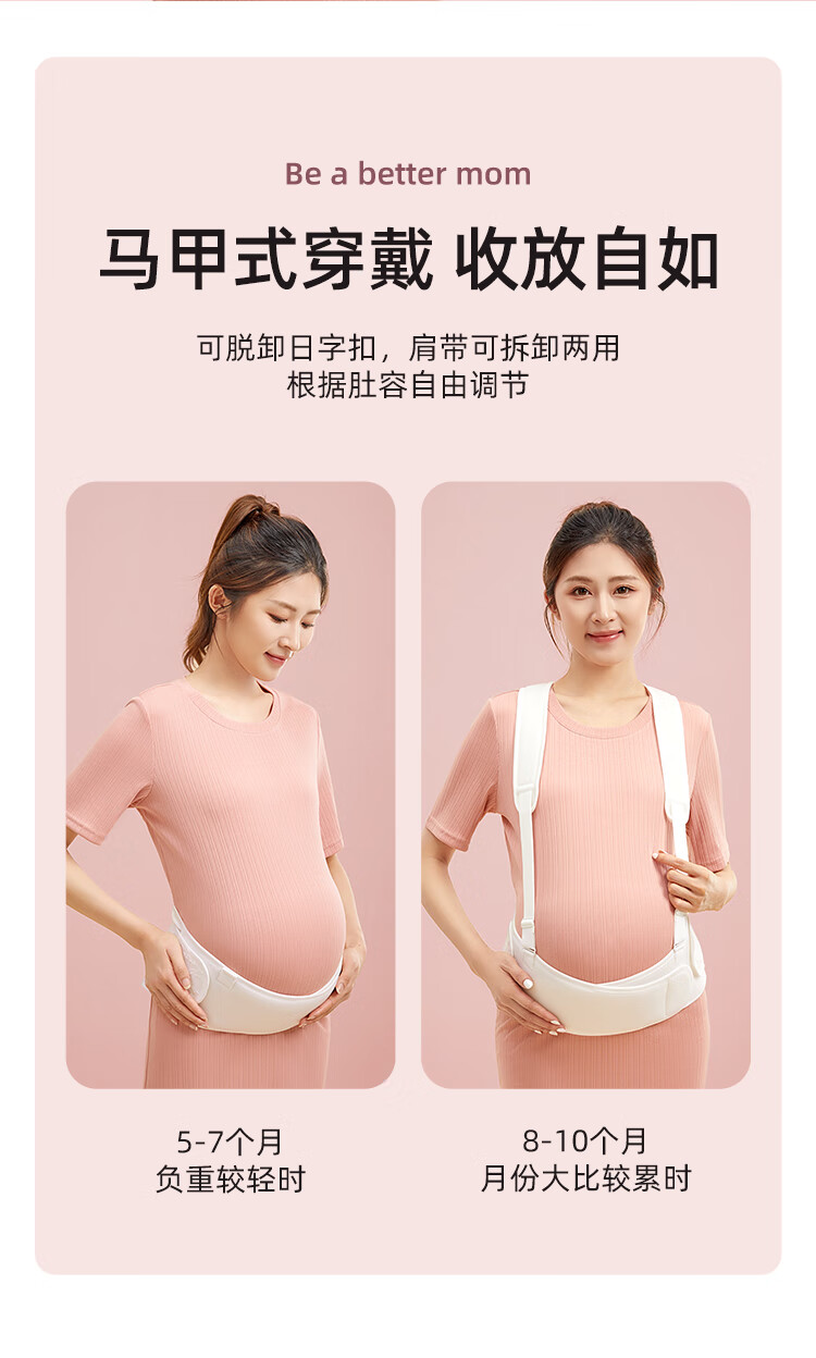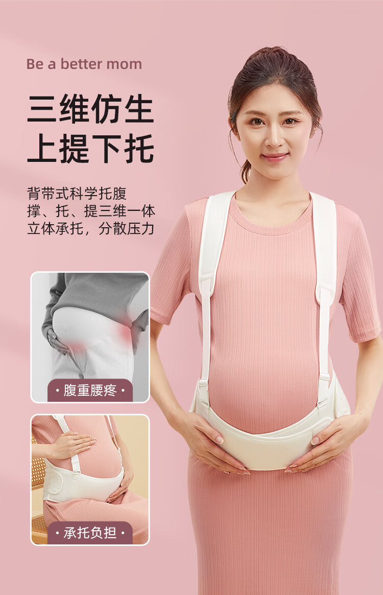 科学托腹,三维仿生,立体环保承托,柔护胎位,减轻负担,四季可用,拆卸两用
