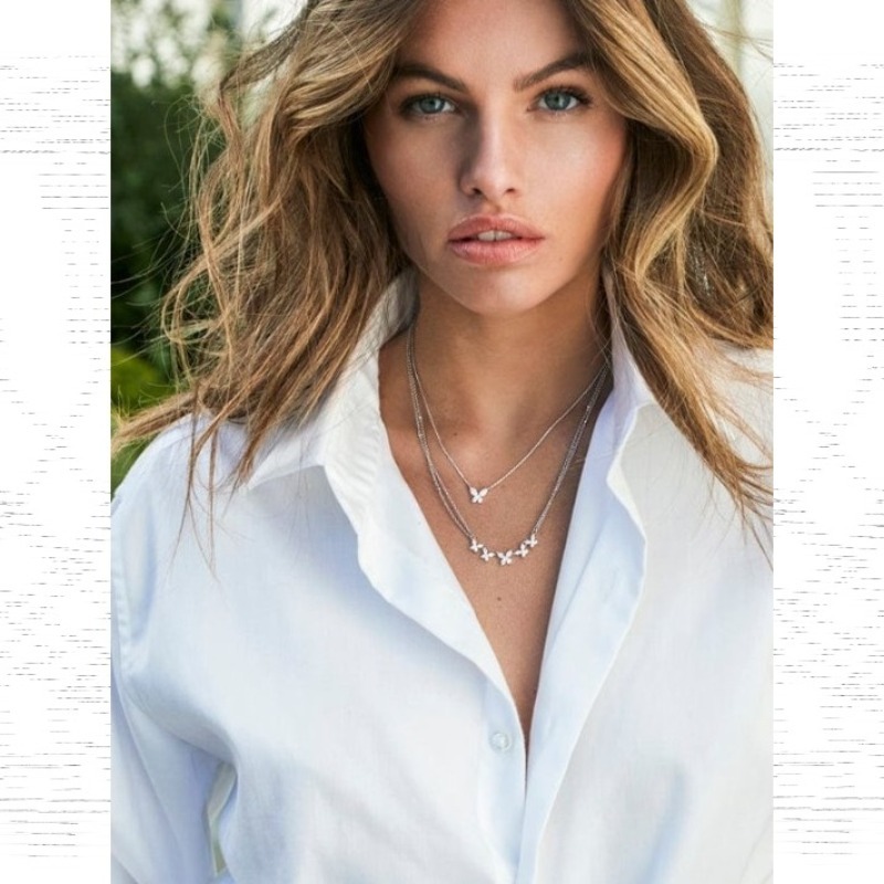 这款项链采用纯银手工制成,微镶了白色氧化锆石。