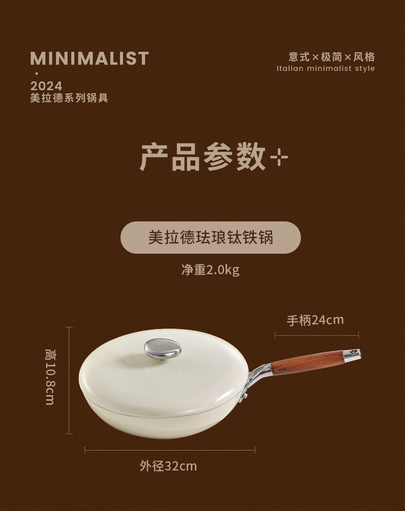 简约风格,高颜值; 优选珐琅,易清洁,不易烧黑; 钛工艺加持,0涂层更放心; 800°高温烧制,一体成型; 不挑炉灶,高温不变色; 榉木把手握感舒适,耐高温不变形; 即冲即净,方便快捷。