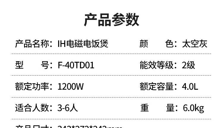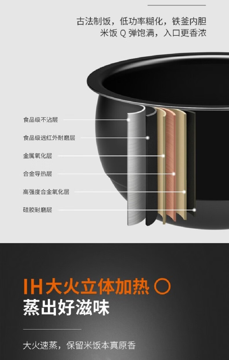 苏泊尔(SUPOR)电饭煲电饭锅IH电磁加热智能预约触摸操控精铁球釜内胆智能电饭煲SF40HC32