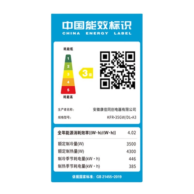 康佳 空调大1.5匹 三级能效挂机冷暖变频壁挂式KFR-35GW/DL-A3