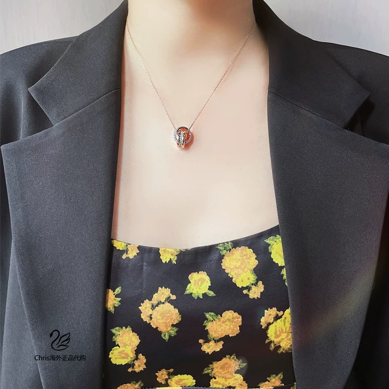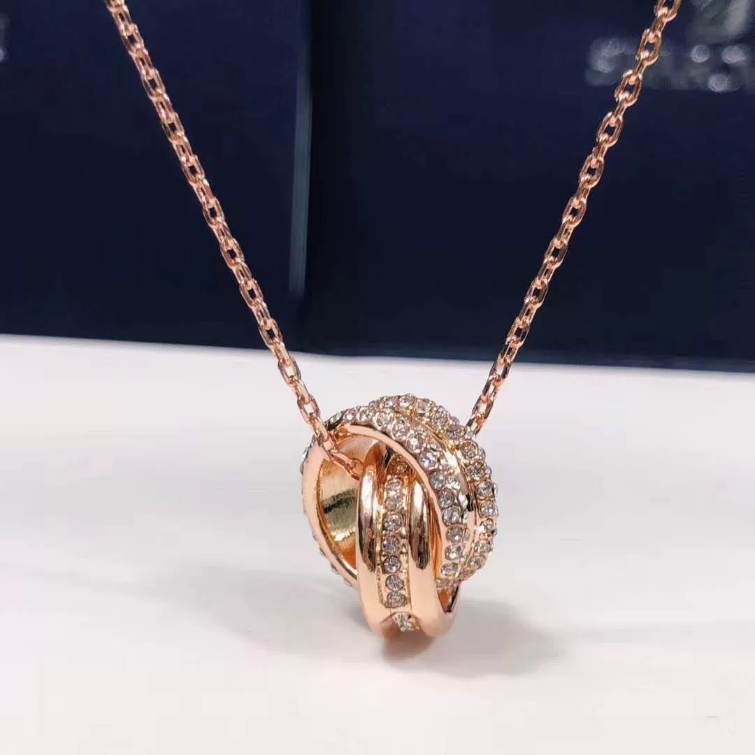 施华洛世奇 SWAROVSKI 玫瑰金双环转运珠项链吊坠锁骨链女送生日礼物5240525/5240524