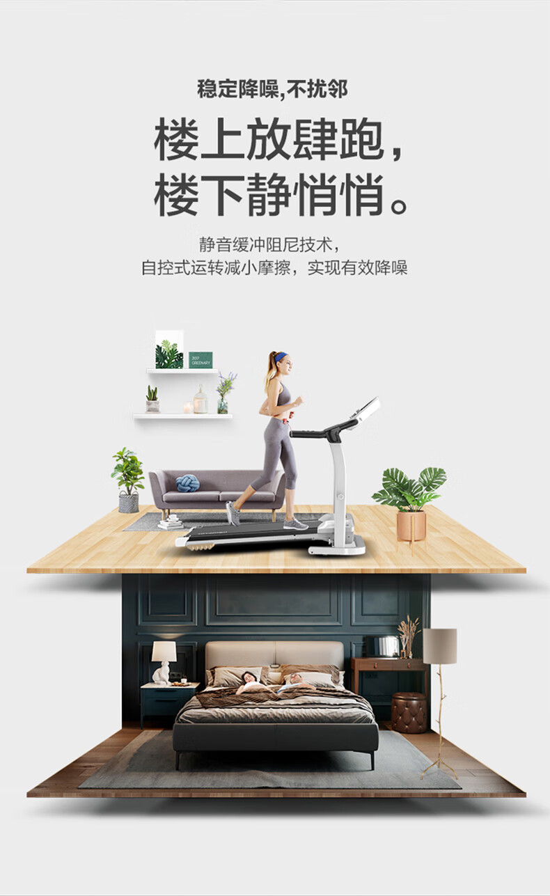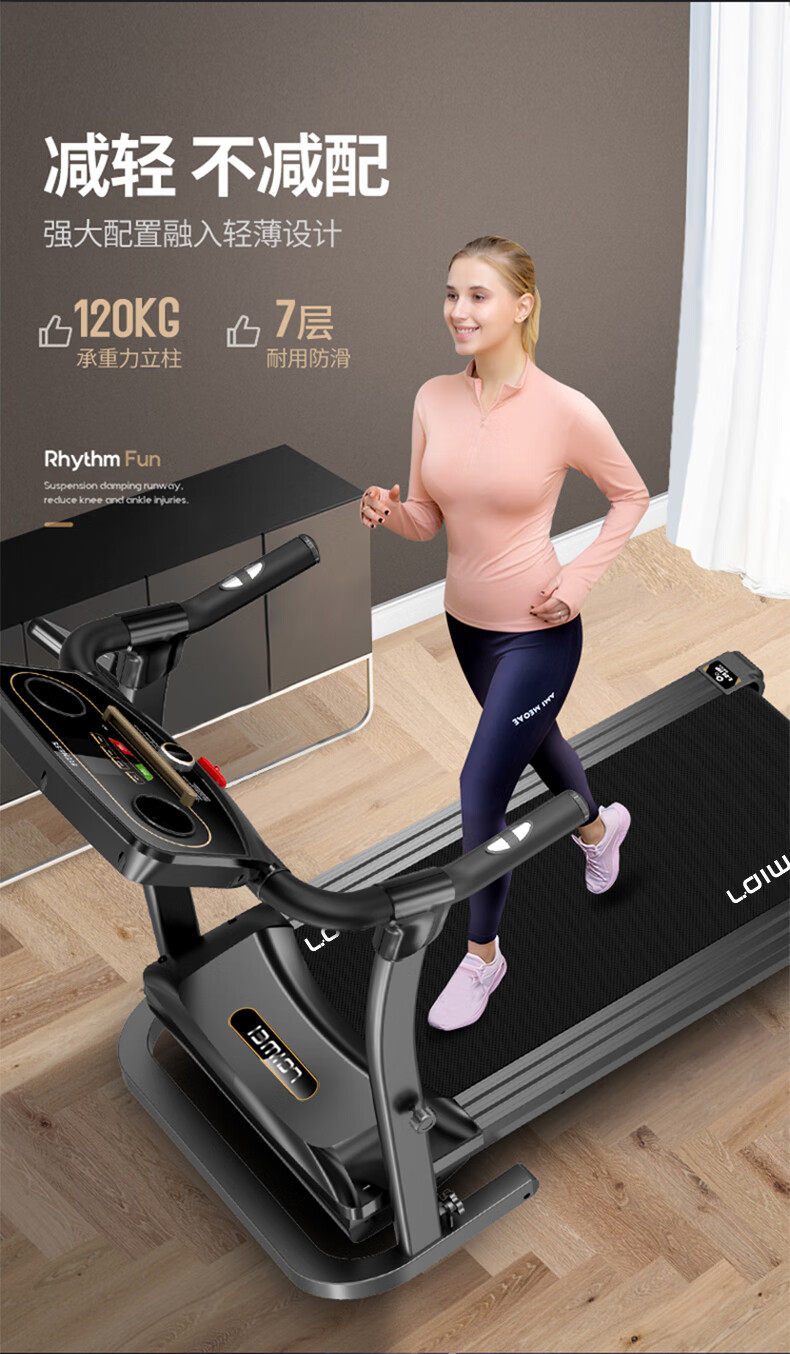日月同修单功能5寸蓝屏免安装大跑步机带USB音响家用静音防震折叠走步机