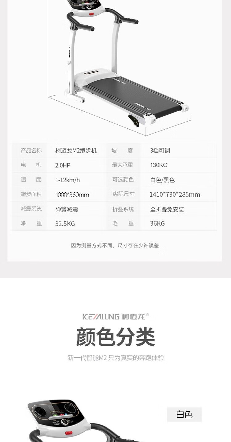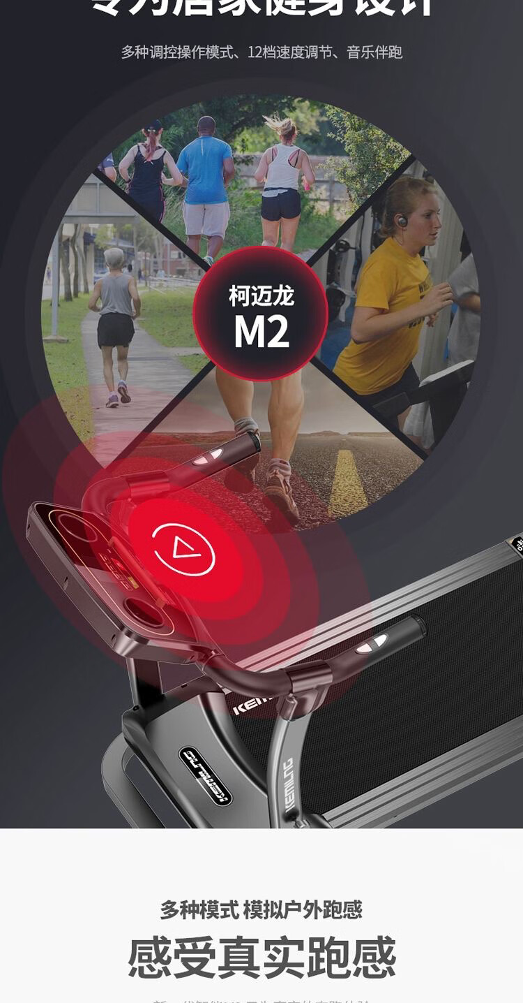 柯迈龙 跑步机M2-黑色免安装家用运动锻炼身体强身健体静音畅跑12档礼品