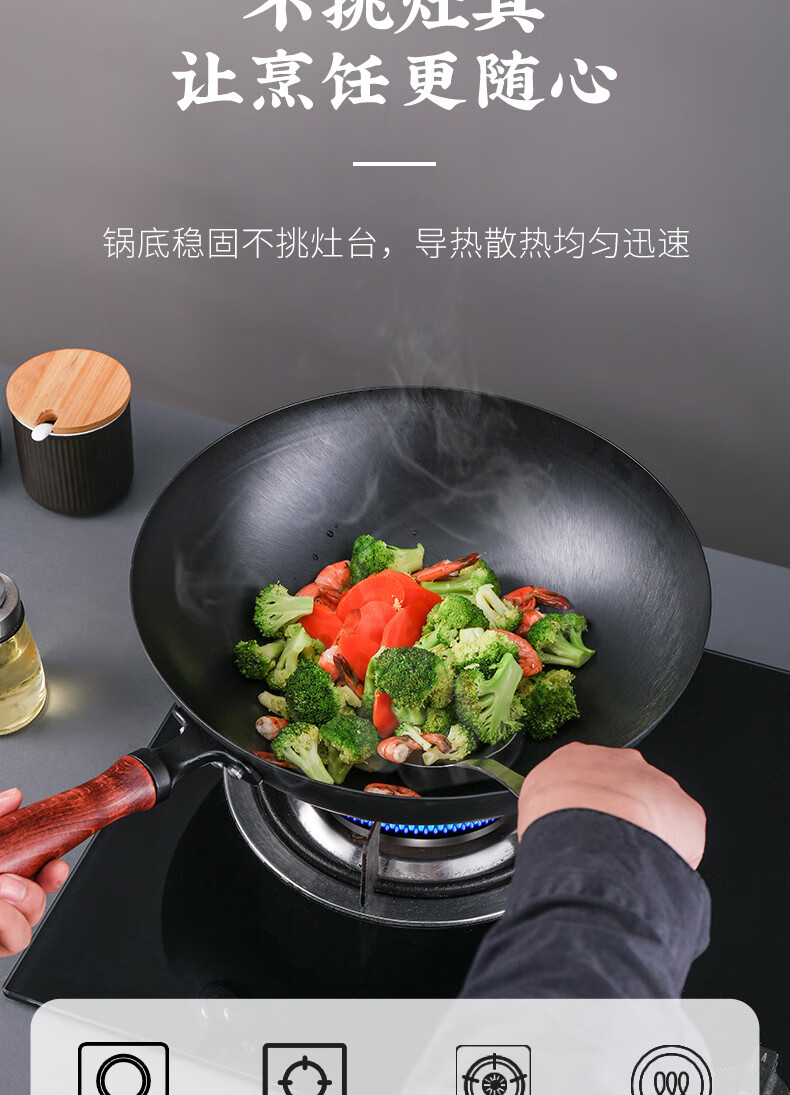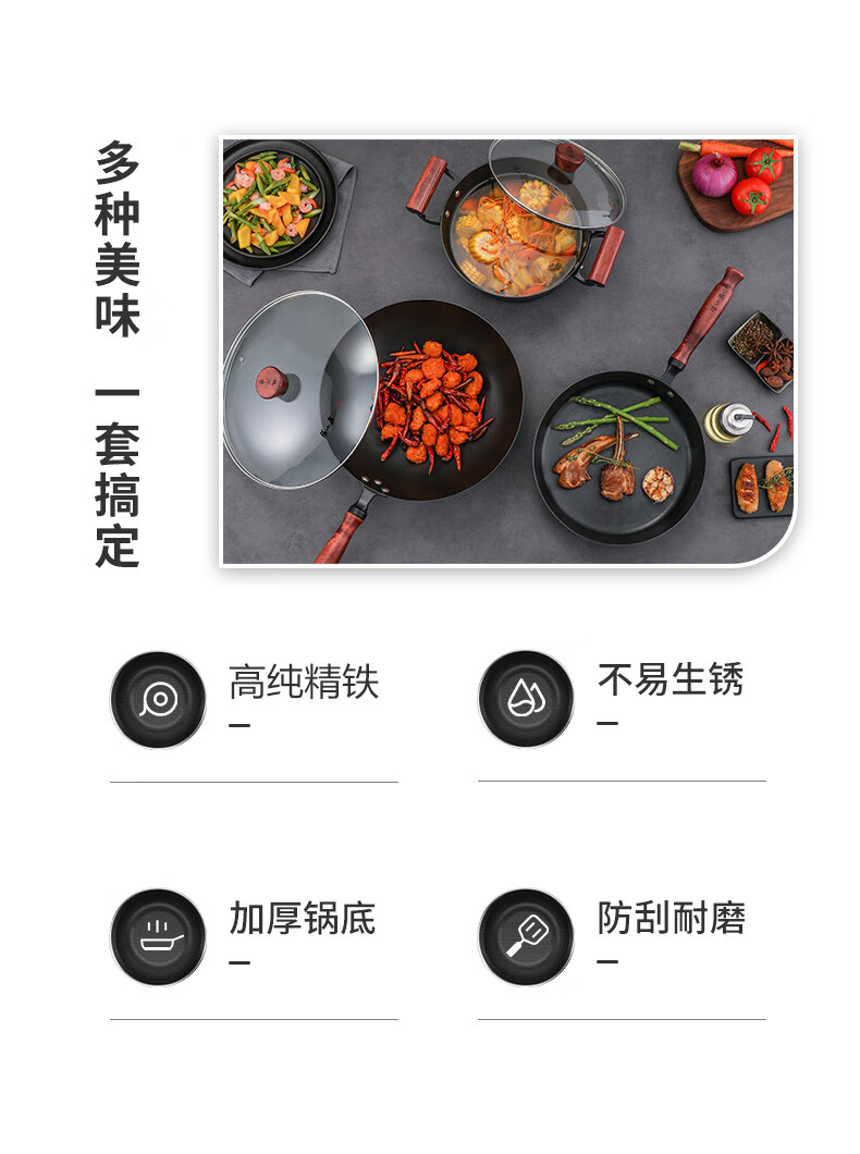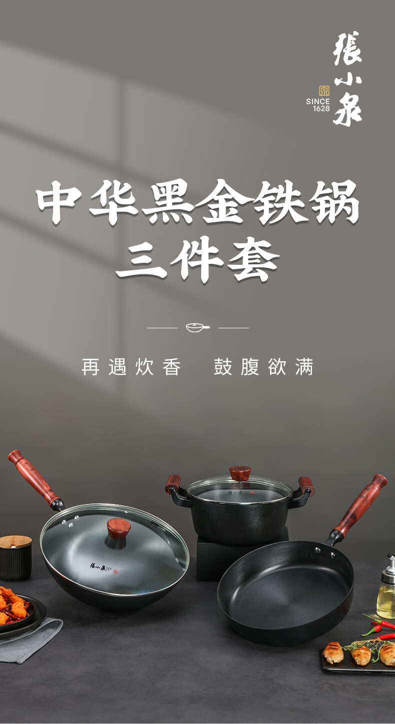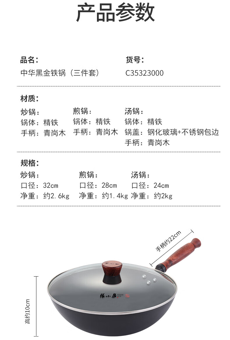 张小泉C35323000中华黑金铁锅锅具套装(三件套)