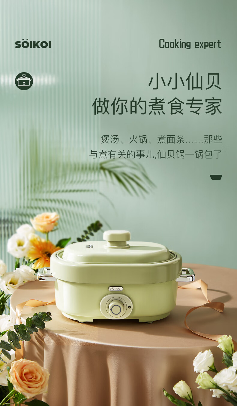 SOIKOI司崎库是以厨房小电为主营产品的家用电器品牌,生活新主张,极简主义的坚持,让你告别拥挤厨房,享吃不重样。SOIKOI致力于提供料理锅产品,以满足顾客不同的需求,所有产品符合中国质量标准和国际质量标准,深受国内外顾客的喜爱和认同。