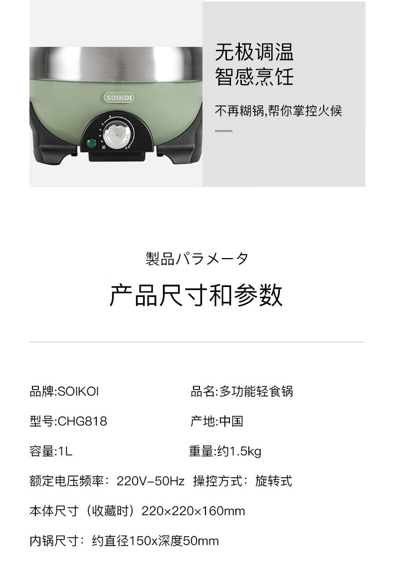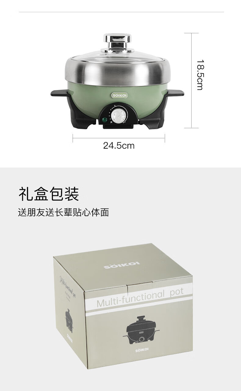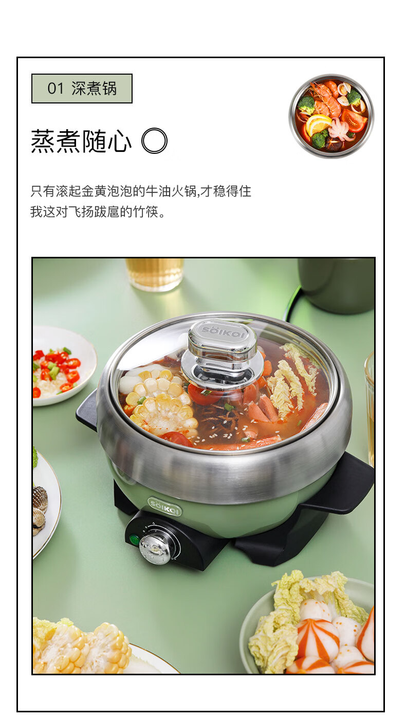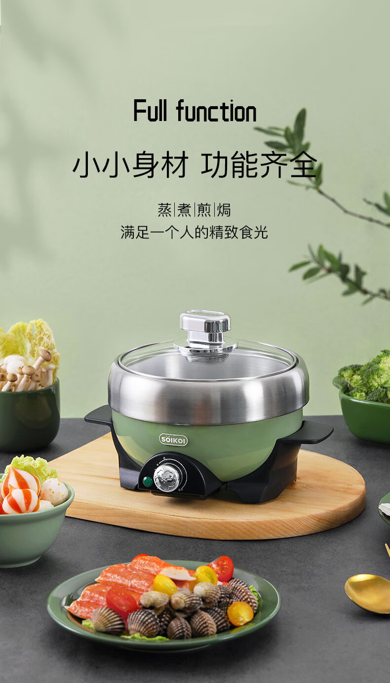 SOIKOI司崎库是以厨房小电为主营产品的家用电器品牌,生活新主张,极简主义的坚持,让你告别拥挤厨房,享吃不重样。SOIKOI致力于提供料理锅产品,以满足顾客不同的需求,所有产品符合中国质量标准和国际质量标准,深受国内外顾客的喜爱和认同。