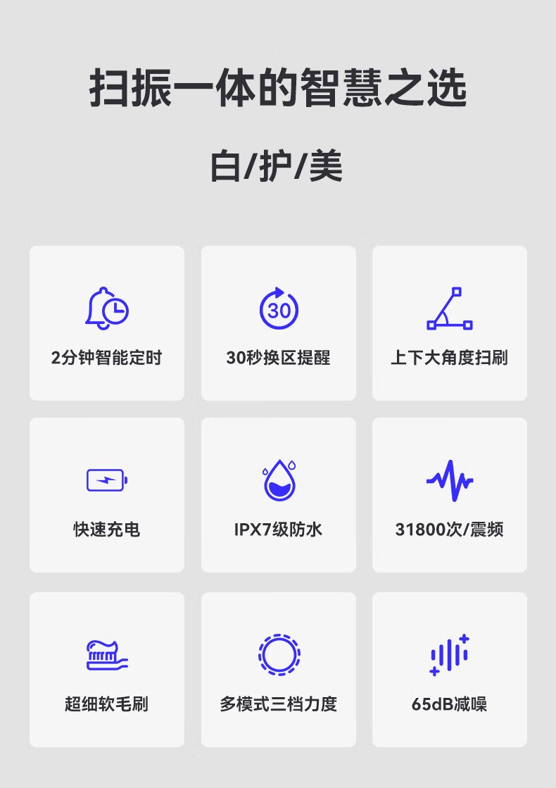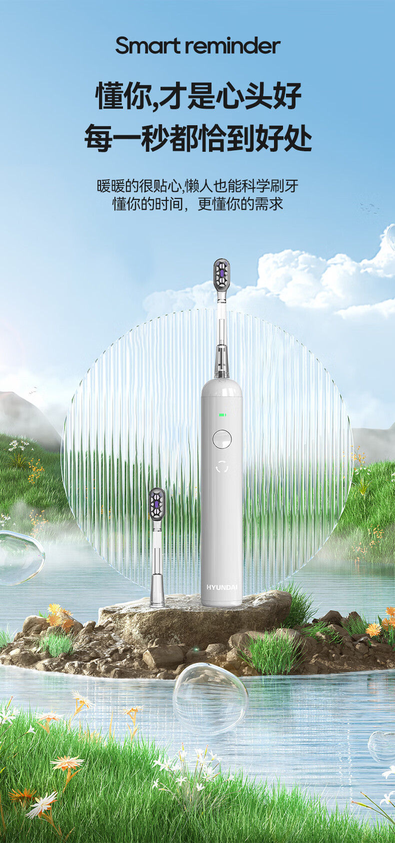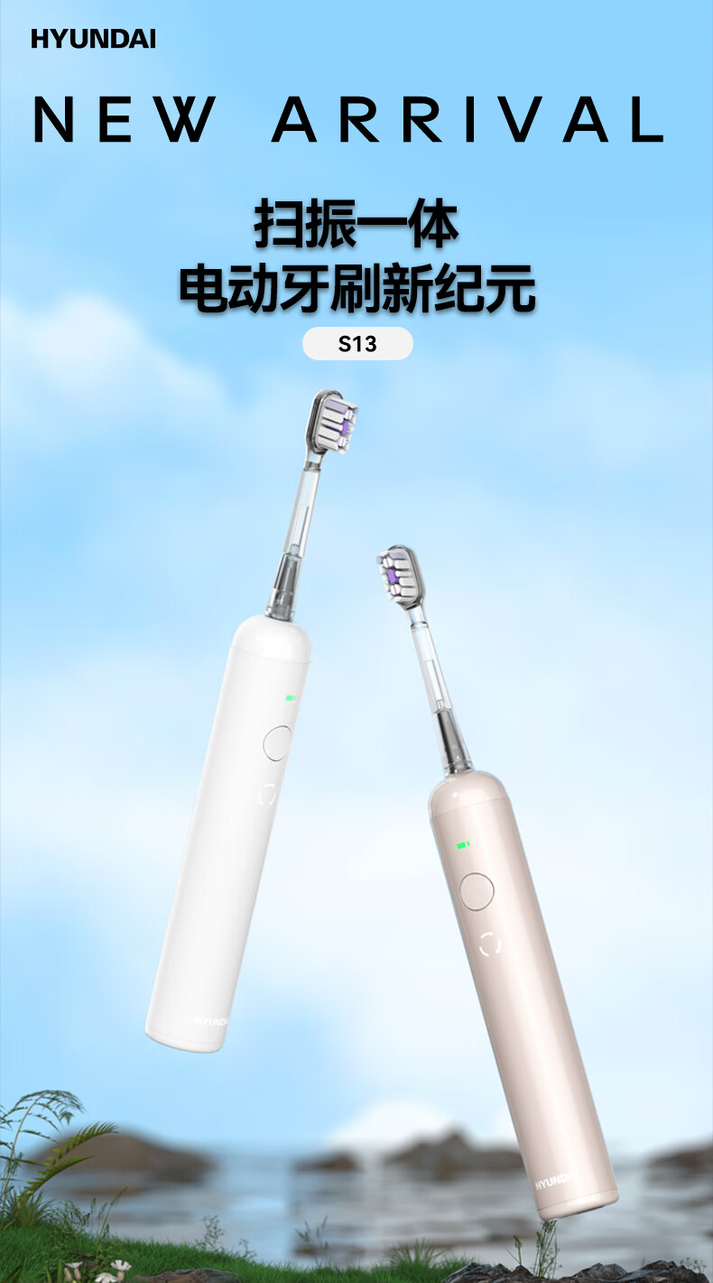 HYUNDAI 扫振一体电动牙刷(配2个牙刷头)S13