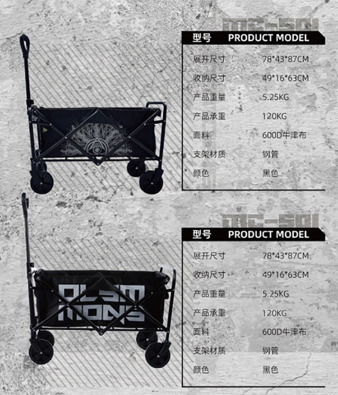 汉乐美途 户外拉车HL-1203 黑色80*50*50cm