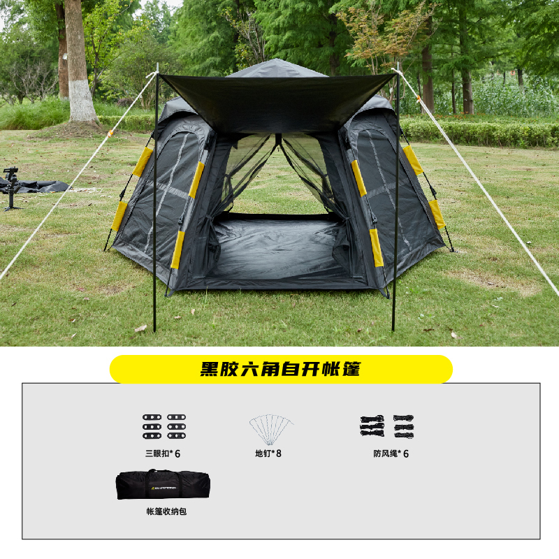 帐篷户外便携式折叠全自动防晒防雨野外露营装备黑胶帐篷用品