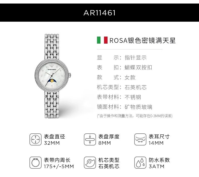 【机芯质保2年】Armani阿玛尼ROSA玫瑰小圆盘女士手表气质镶钻轻奢石英表AR11418