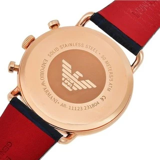 此款GIORGIO ARMANI AR11123 飞行员计时石英表,不锈钢表壳,直径44毫米,石英机芯,拥有计时功能,红色计时秒针,外圈测速圈显示,日常生活级别防水。此款商品厚度12mm、直径43mm、表耳22mm、表带200+/-5mm。