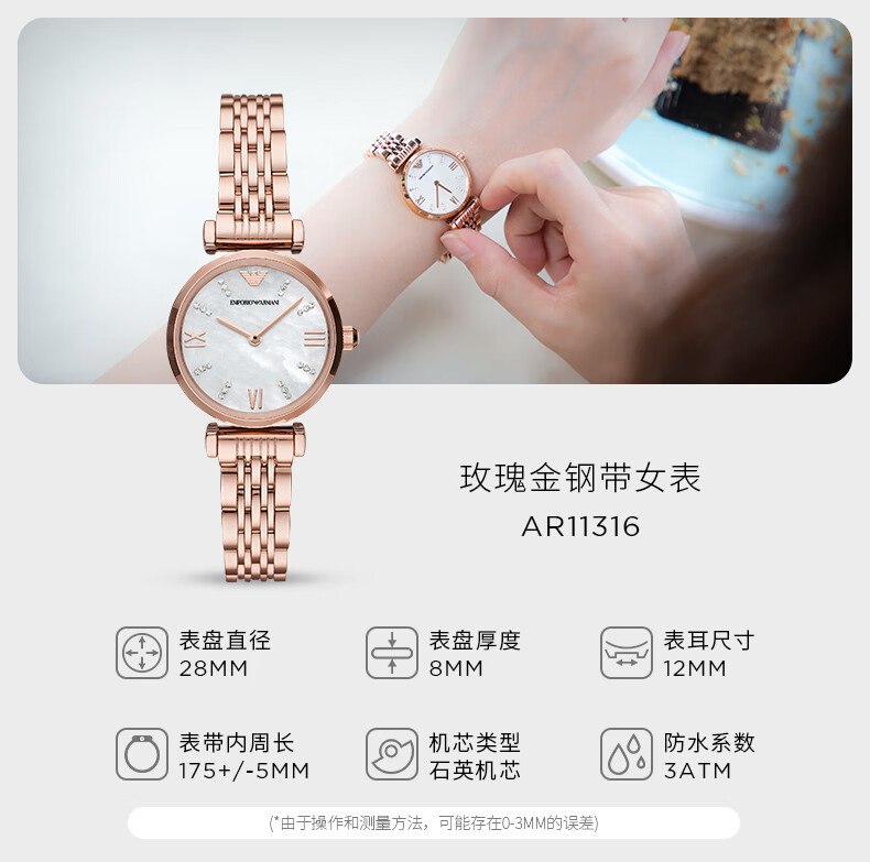 【机芯质保2年】Armani阿玛尼ROSA玫瑰小圆盘女士手表气质镶钻轻奢石英表AR11418