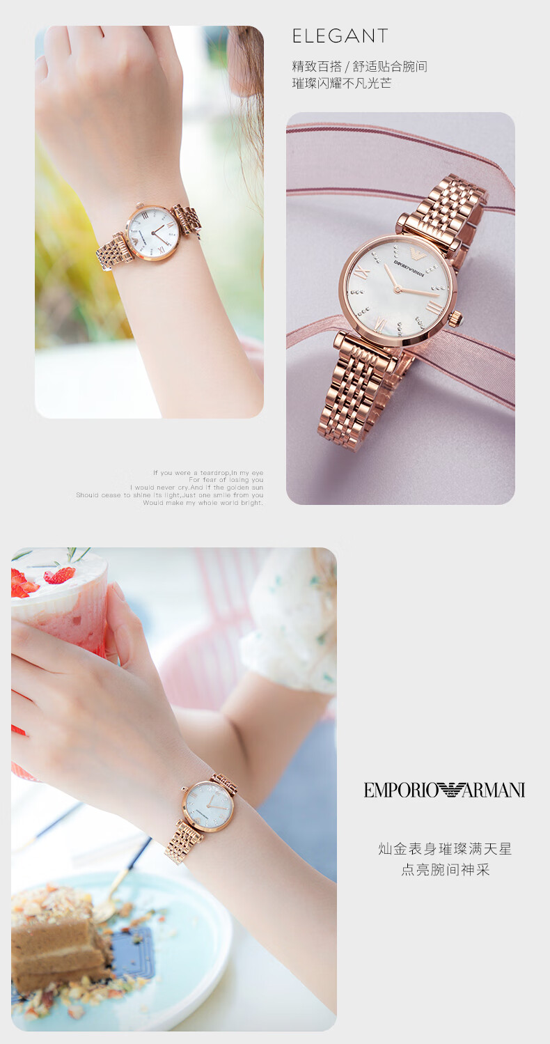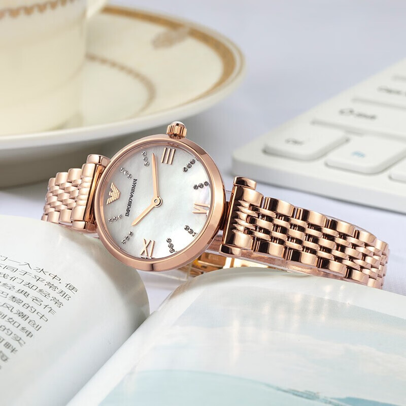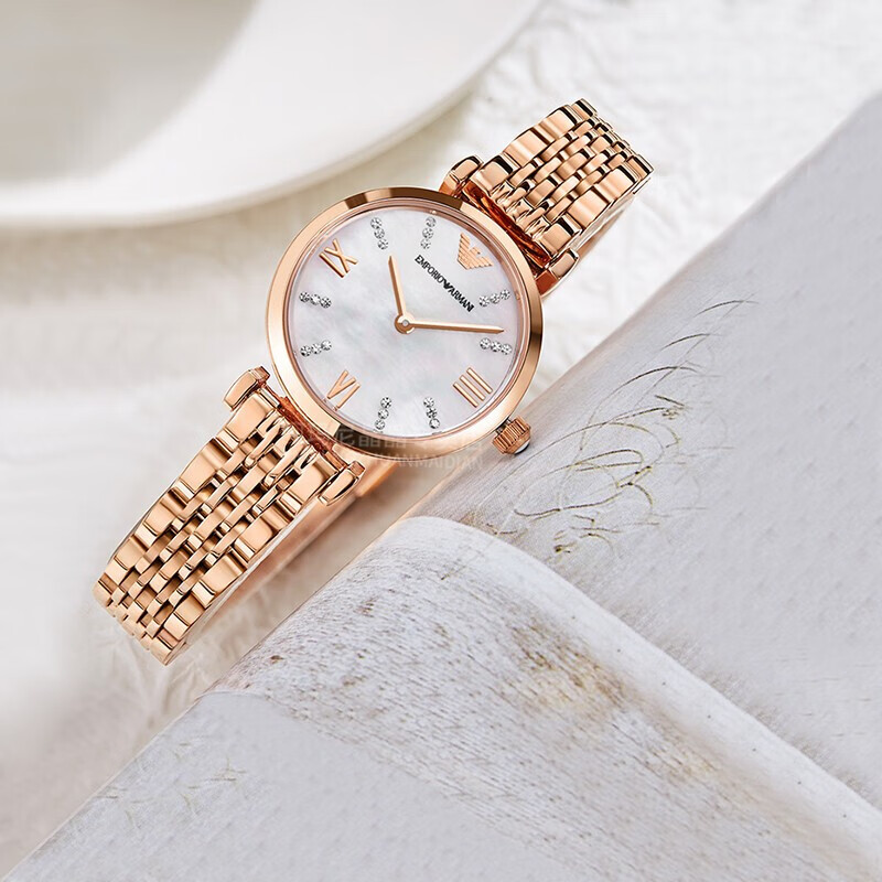 【机芯质保2年】Armani阿玛尼玫瑰小圆盘手表女 轻奢气质月相贝母盘石英女士腕表AR11461