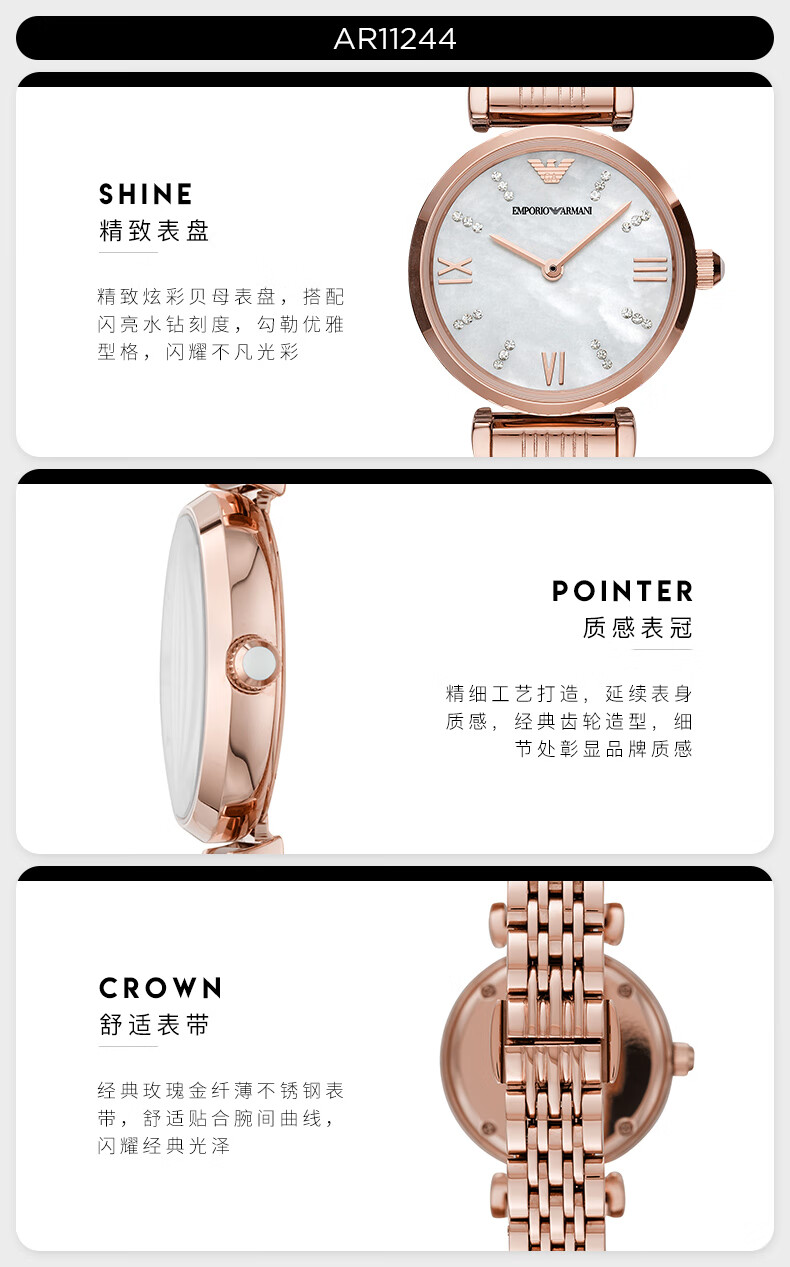 【全国联保 顺丰包邮】EMPORIO ARMANI阿玛尼手表 简约时尚石英女表AR11355