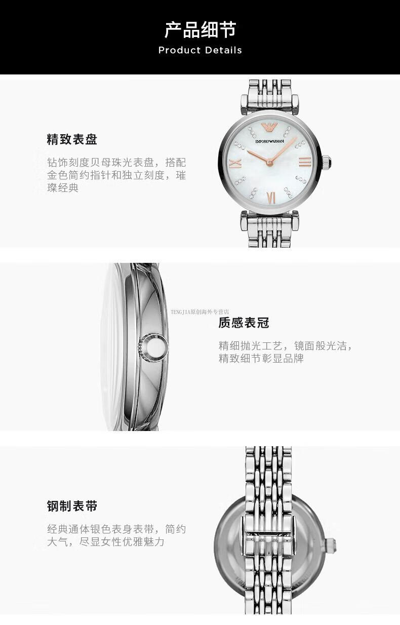 【机芯质保2年】Armani阿玛尼玫瑰小圆盘手表女 轻奢气质月相贝母盘石英女士腕表AR11461
