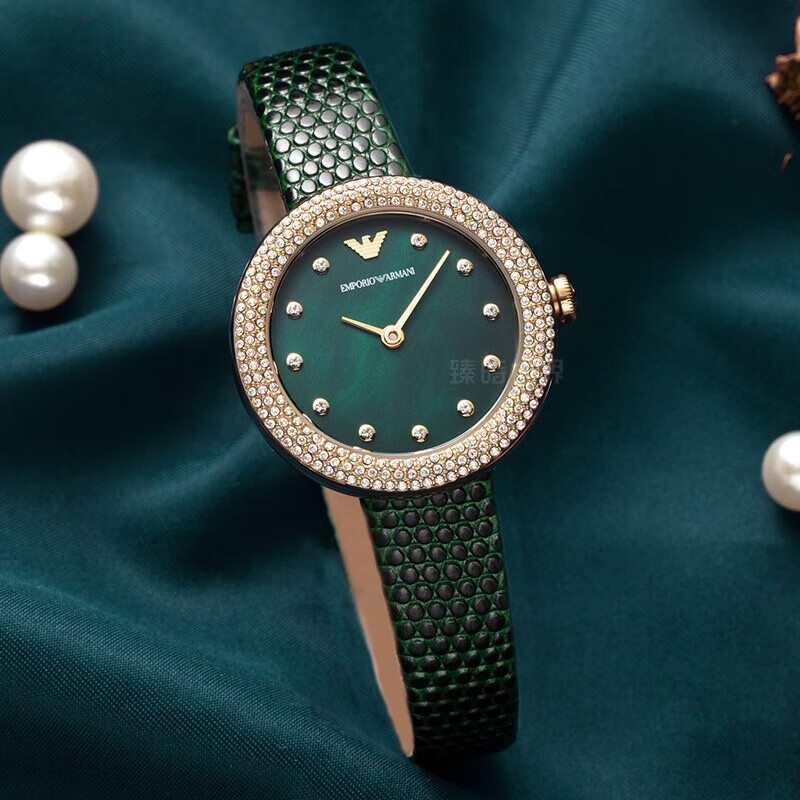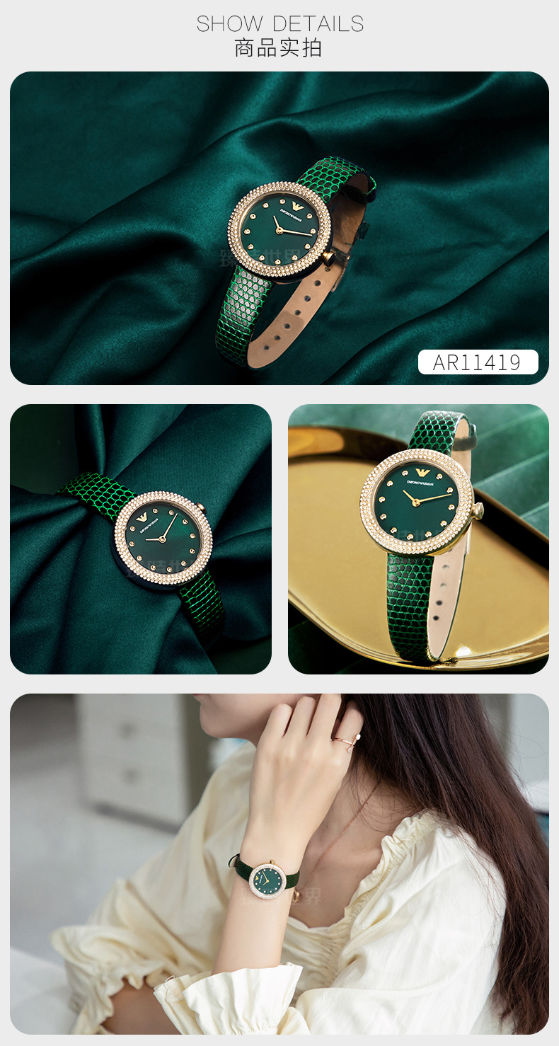 【机芯质保2年】Armani阿玛尼手表女新品满天星复古绿镶钻气质石英表AR11403