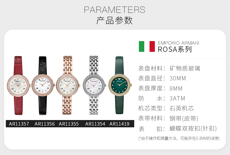 【机芯质保2年】Armani阿玛尼ROSA玫瑰小圆盘女士手表气质镶钻轻奢石英表AR11418