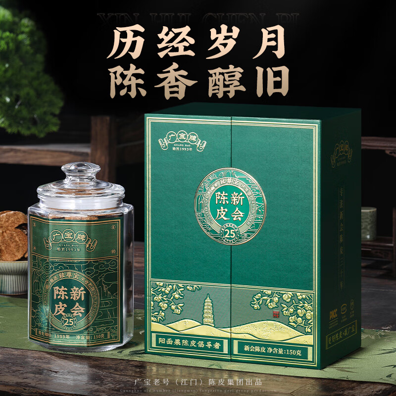 广宝老号(江门)陈皮集团有限公司坐落于江门新会中心地区,是陈皮老商标广宝的所有者,企业以“更好陈皮找广宝”为经营战略、以“阳面果新会陈皮倡导者”为价值主张,以发扬中国优秀的传统茶饮文化和养生文化为使命,专注于新会古法陈皮的研究、生产、销售。30年来,广宝凭借品质稳定、口感经典、风格别致,树立了良好的品牌形象和口碑,已成为陈皮行业受人信任的企业。